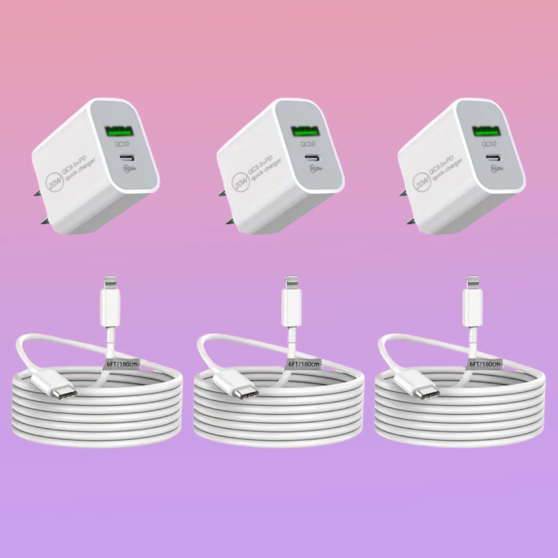1-3Set 20W US USB C Port Fast Charger For iPhone 14 13 12 11 Pro Max Plus XR Xs 7 8 3.3 Ft USB C Fast Charging Cable Accessories