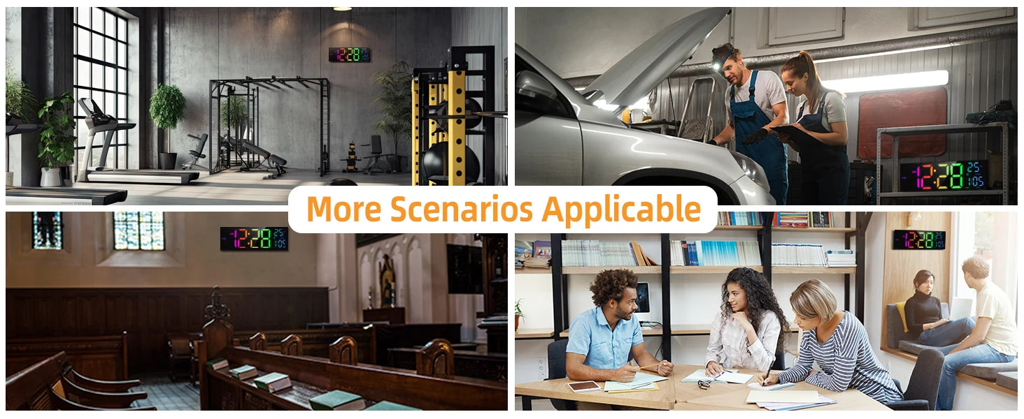 【Dual-Use Flexibility】It provide two style whether you prefer wall-mounting or placing it on a desk with the included stand, this clock fits perfectly into any setting.It is perfect for a wide range of environments such as living rooms, offices, warehouses, classrooms, gyms, and kitchens,or a gift for family and friends.