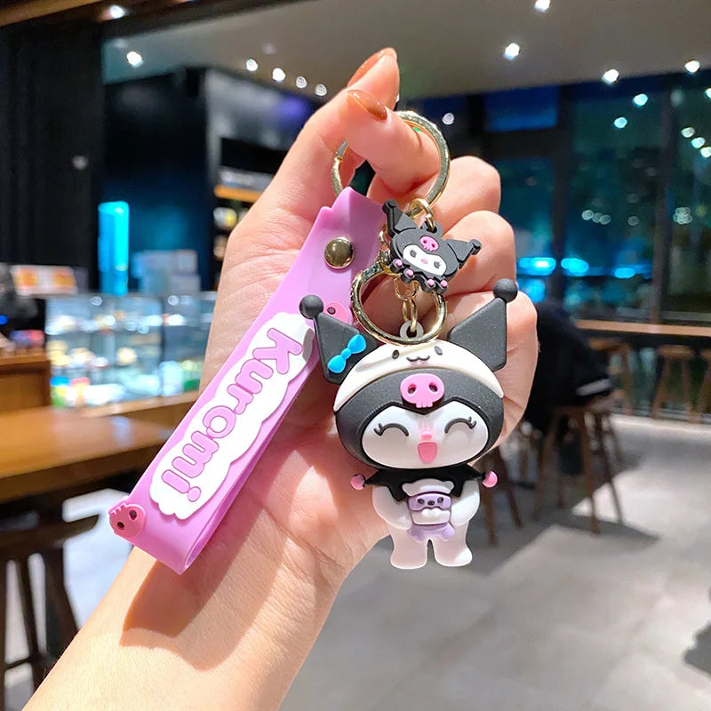 Cute anime keychain set featuring Kuromi, My Melody, and Cinnamoroll. Perfect as a bag pendant, car charm, or collectible gift for fans of Sanrio characters. Lightweight, durable, and suitable for kids and adults alike