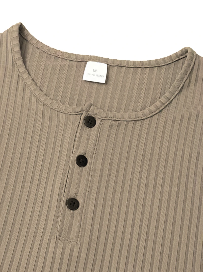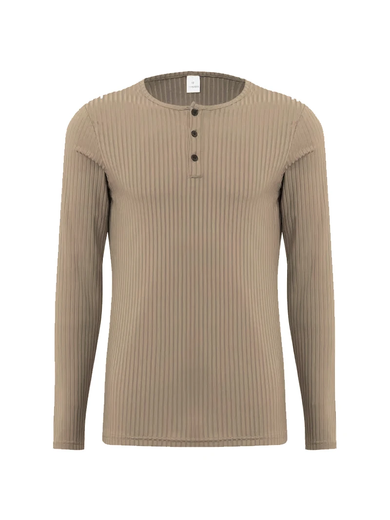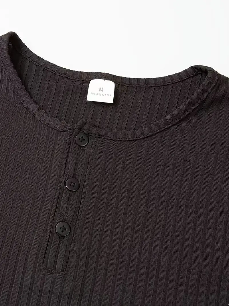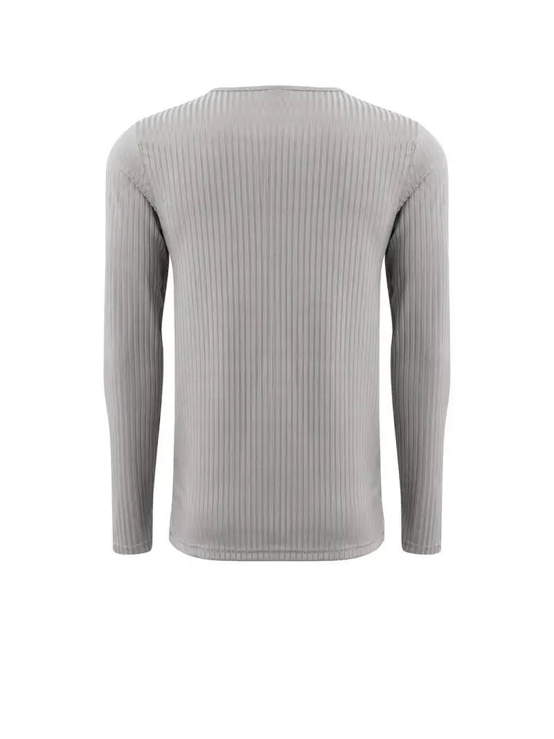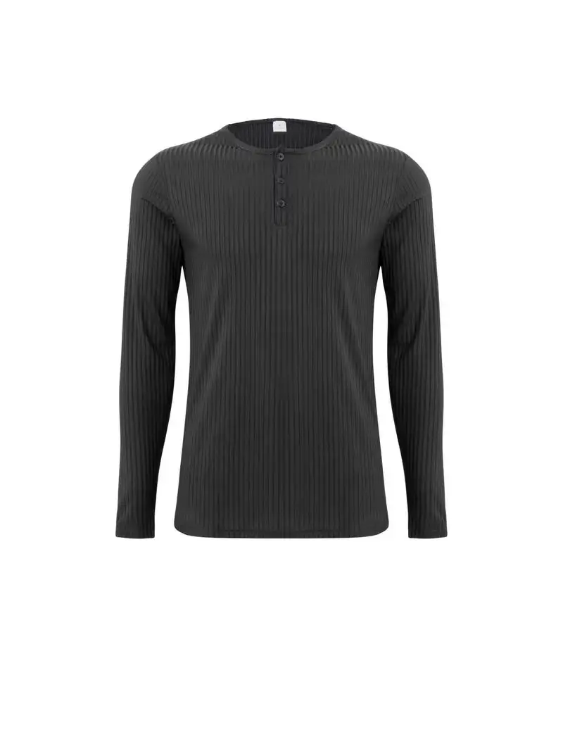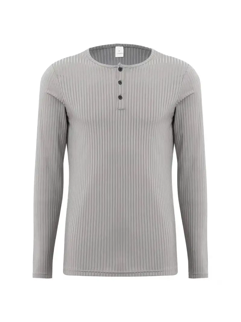 Autumn Men's Collarless Breasted Henry Shirt Top Fitness High Stretch Base Shirt Solid Color Plus Size Casual Long Sleeve