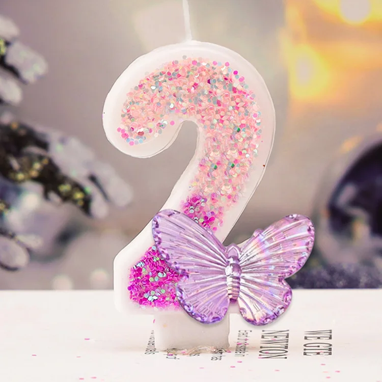 A purple butterfly digital candle with gradual color change, perfect for princess-themed birthday cakes. Ideal for decorating dessert tables and adding a whimsical touch to celebrations