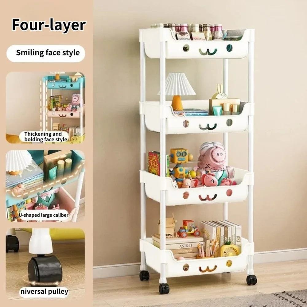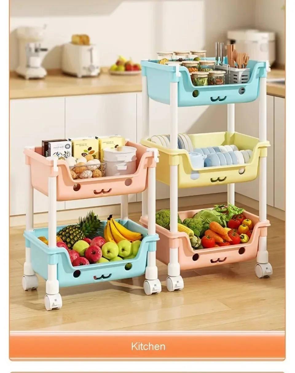 Macaron Storage Handcart Snack Storage Rack Movable Household Large Capacity Wheeled Kitchen Rolling Rack Children Storage Rack