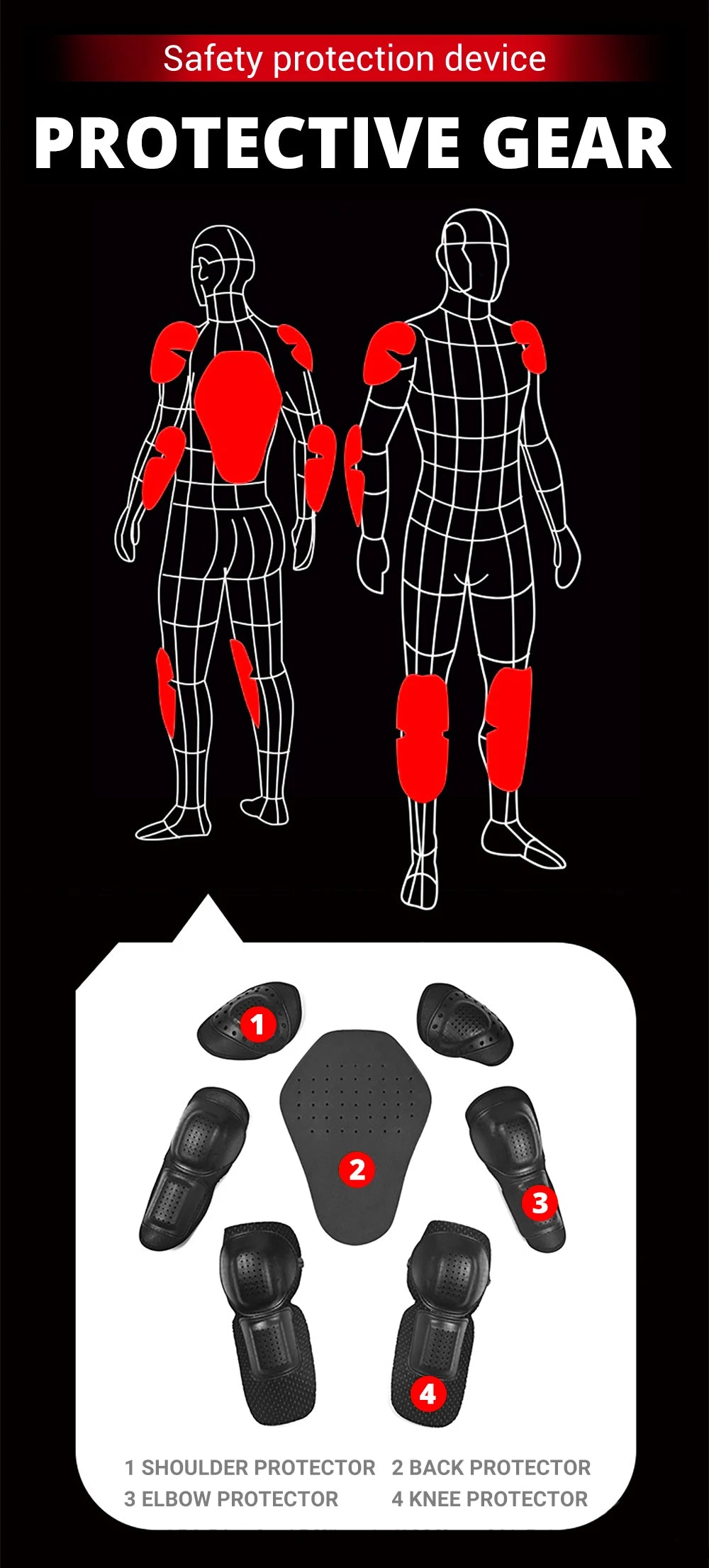 Protectors: Shoulder, Elbow, Back (Neck protection need to purchase separately)