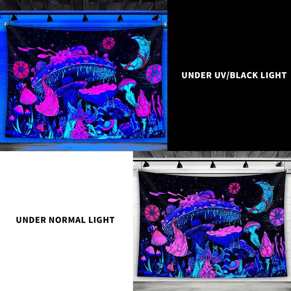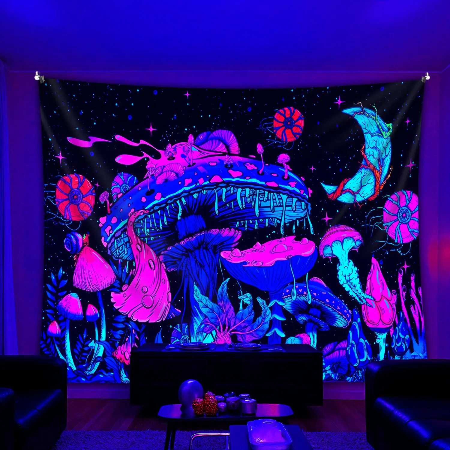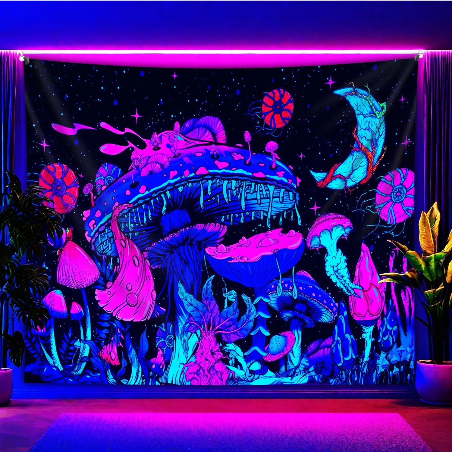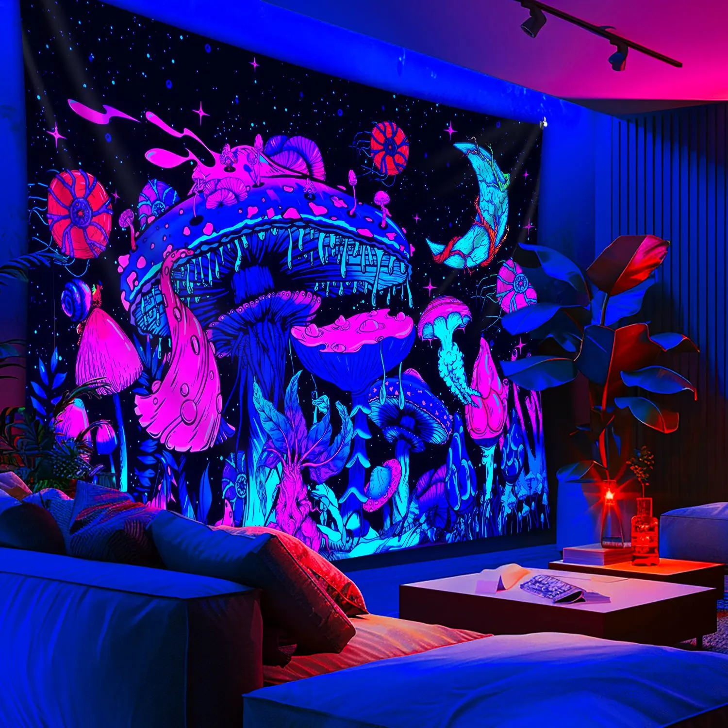 Glow-in-the-Dark Mushroom Wall Tapestry – Home & Room Decor