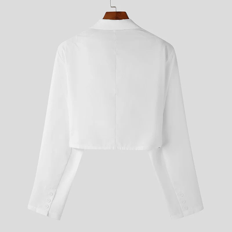 2023 Men Blazer Solid Color Lapel Long Sleeve Autumn Casual Suits One Button Streetwear Fashion Male Crop Coats S-5XL INCERUN