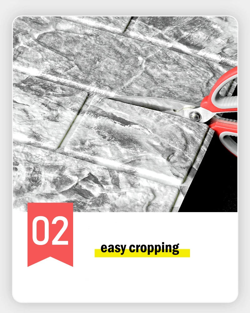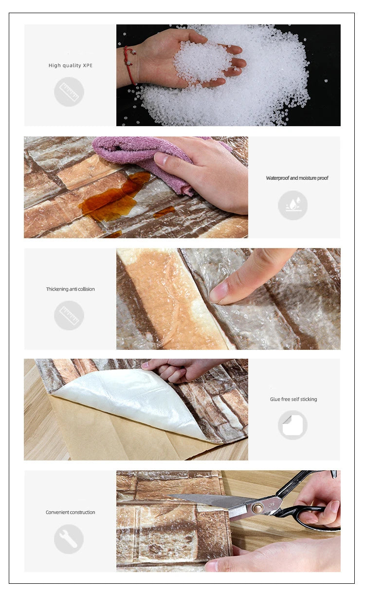 Upgrade your home with this 3D PVC foam wall sticker. Made from high-quality, soft XPE foam, it is waterproof, moisture-proof, sound-insulated, and anti-collision, making it safe for children and family members. Perfect for living rooms, bedrooms, kitchens, kids’ rooms, stairs, and decorative walls, this self-adhesive peel-and-stick wallpaper is easy to install, remove, and maintain. Available in multiple lengths (1m, 2m, 3m, 5m, 10m), it adds a stylish, modern 3D effect to any space.