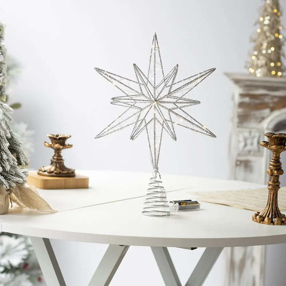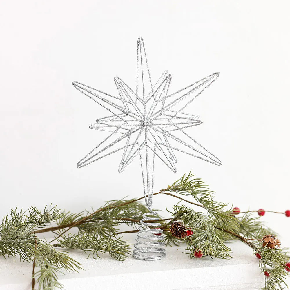 Sparkling Star Topper: Intricate star shape with sparkling LED lights adds a stunning decorative touch to your Christmas tree.