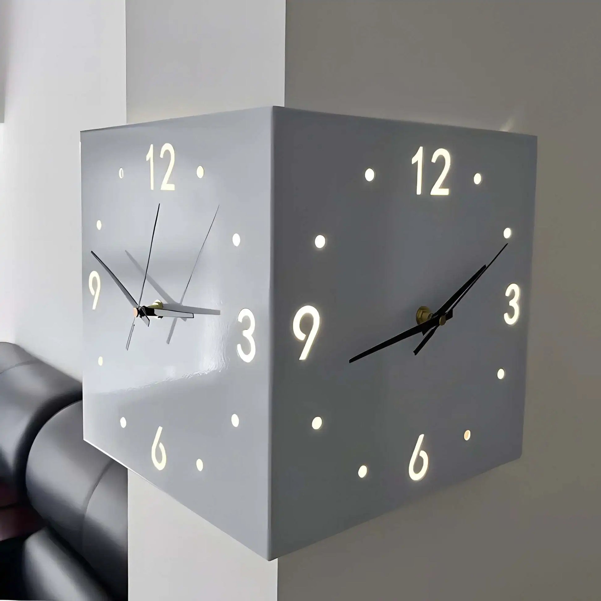 Sensor Luminous Corner Wall Clock – Modern Home & Office Decor