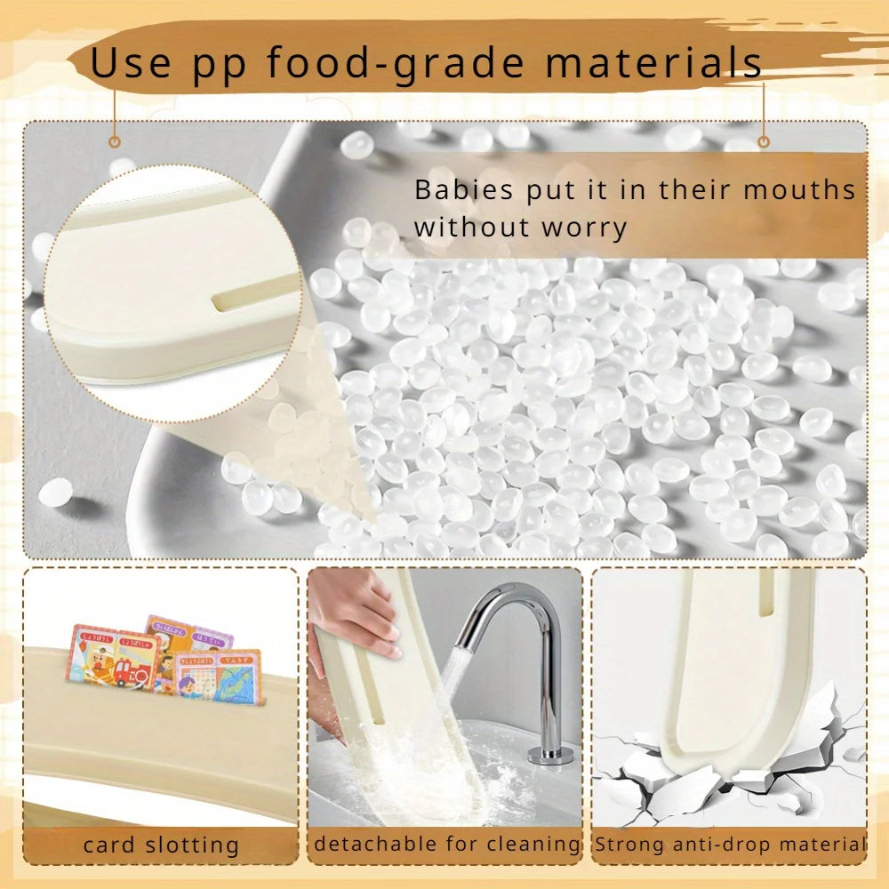 Life with a little one means messes—we’ve got you covered. The removable fabric seat is machine-washable for quick cleanup, while the detachable tray (complete with a handy cup holder) is dishwasher-safe. Spend less time scrubbing and more time enjoying moments with your baby.