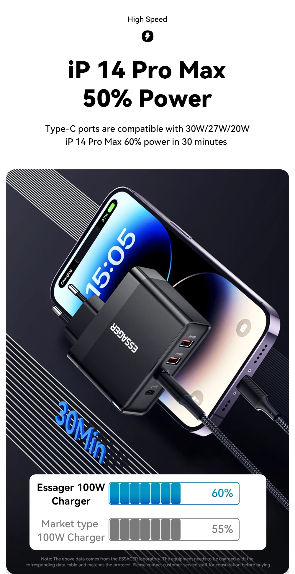 Feature 3:PD fast charging, up to 60% charge for IP14 in 30 minutes, up to 60% charge for iPad in 30 minutes, and up to 50% charge for Macbook Pro in 16 inches in 30 minutes.