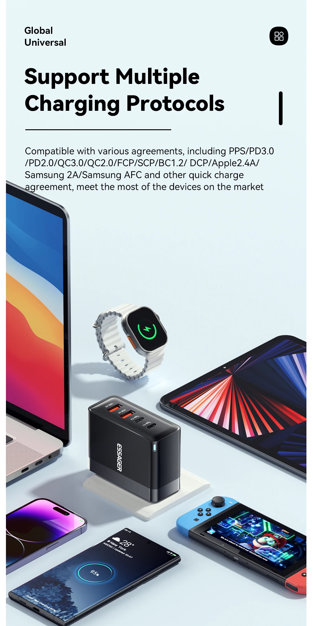 Feature 4:Multi-protocol support, For PPS PD3.1 PD3.0 PD2.0 QC4.0.QC3.0 QC2.0 FCP SCP BC1.2 DCP Apple2.4A Samsung 2A Samsung AFC and many more.