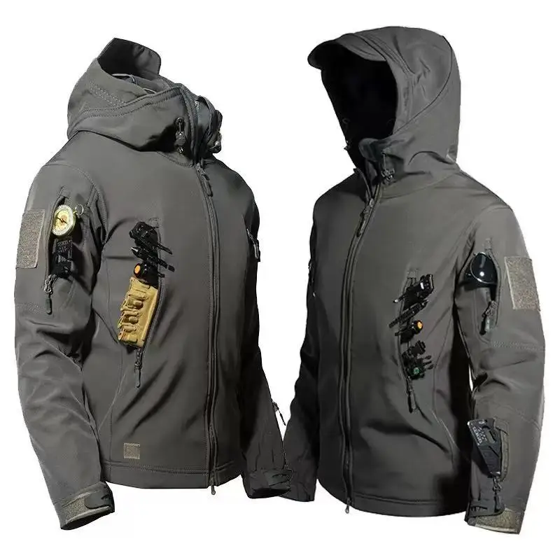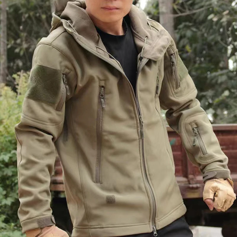 Men Winter Autumn Fleece Tactical Parkas Waterproof Cargo Jackets Windbreak Hiking Camping Climbing Softshell Casual Hood Coats