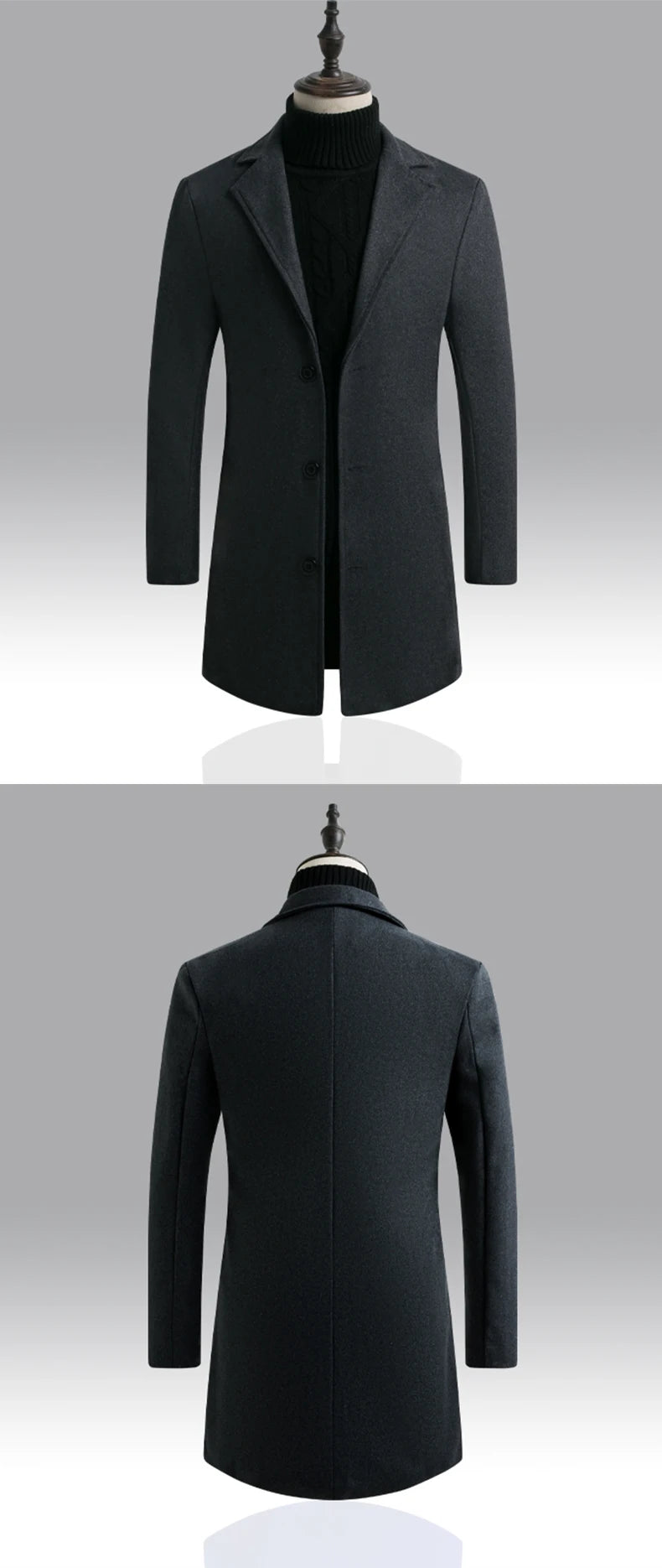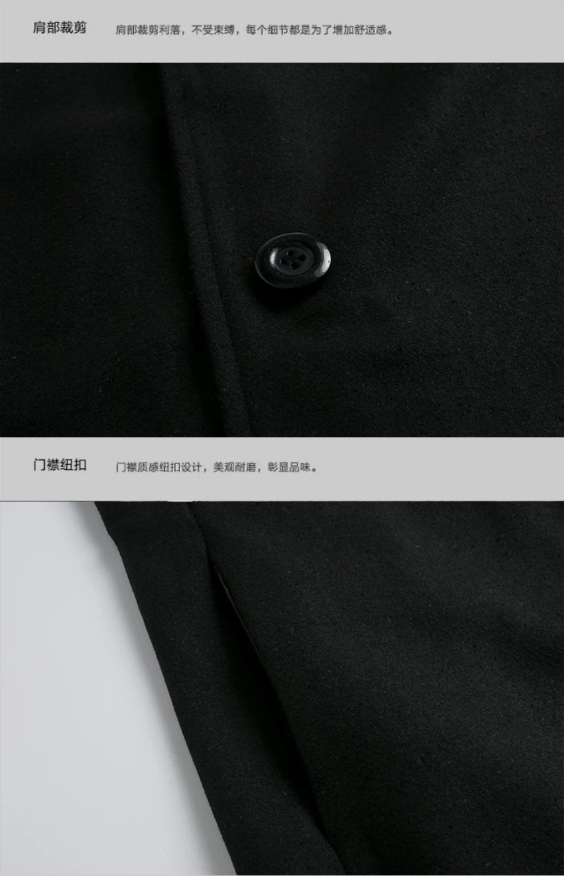 Men Winter Trench Coats Long Jackets Men Slim Fit Casual Wool Blends Business Casual Trench Thicker Warm Long Coats Size 5XL
