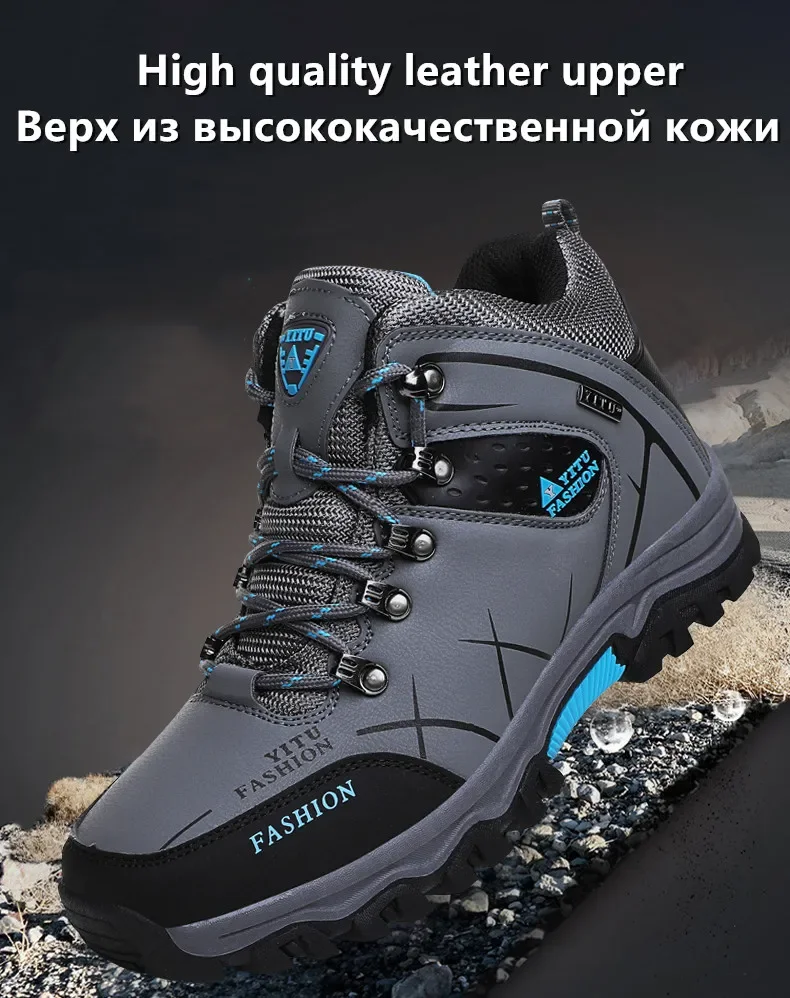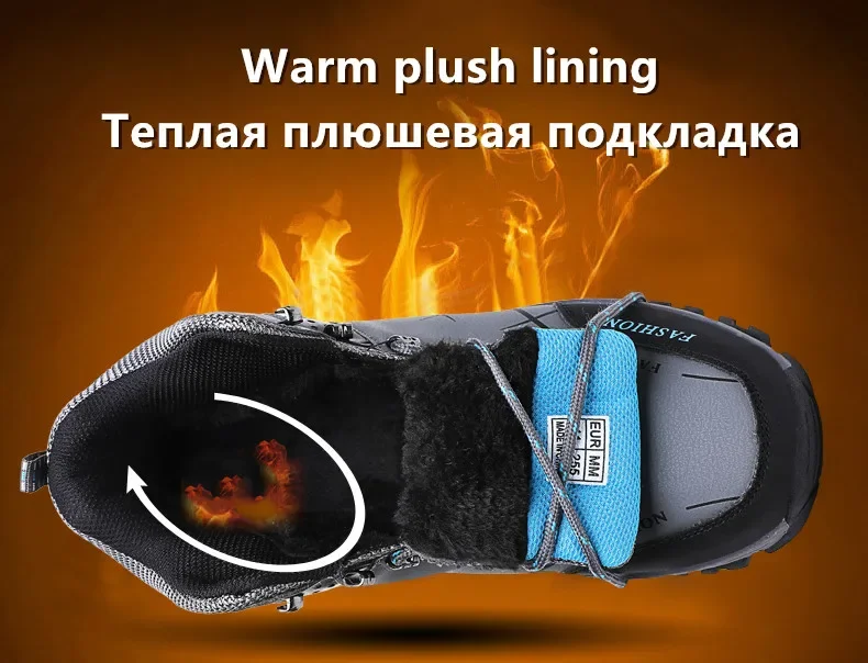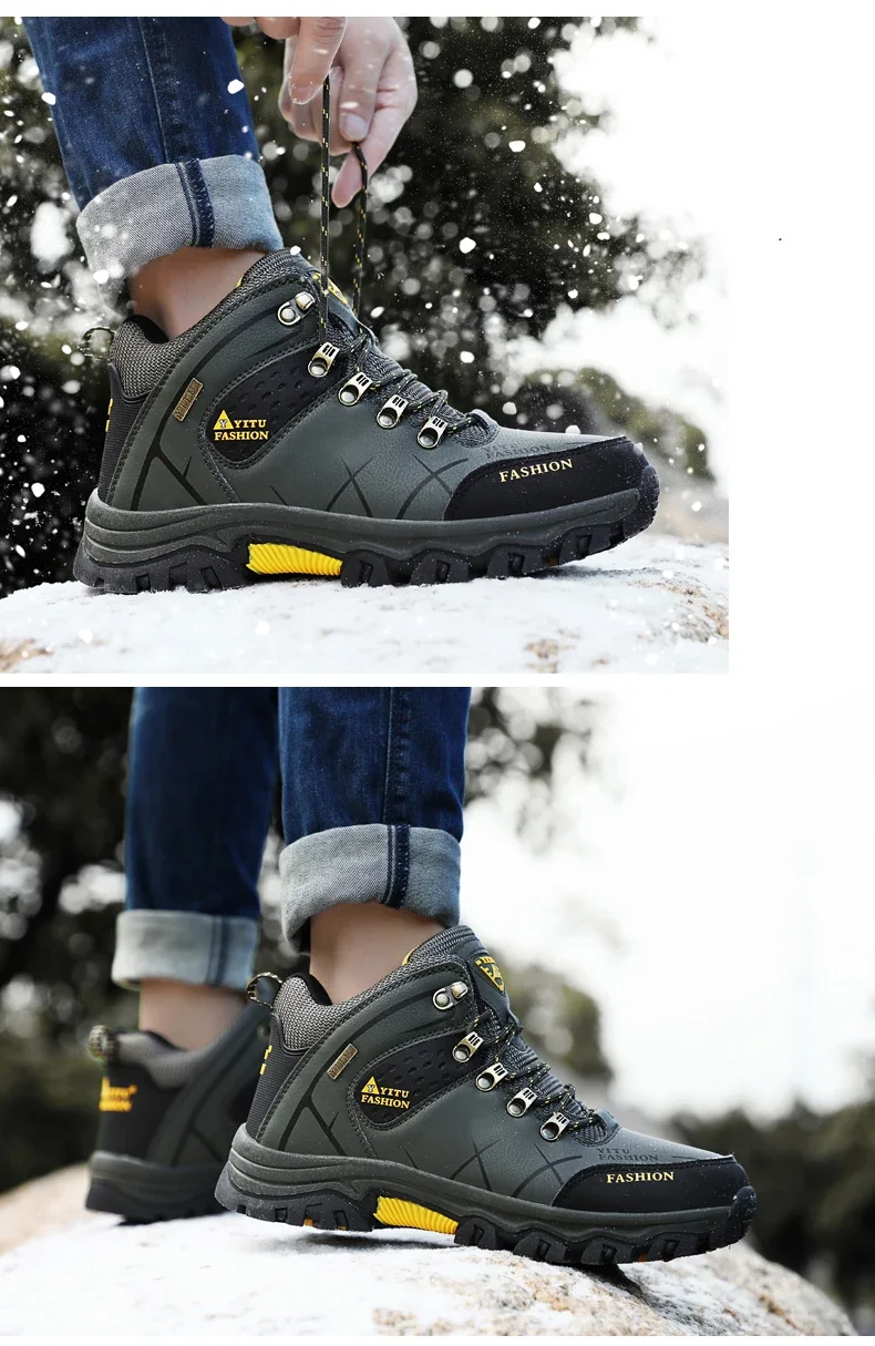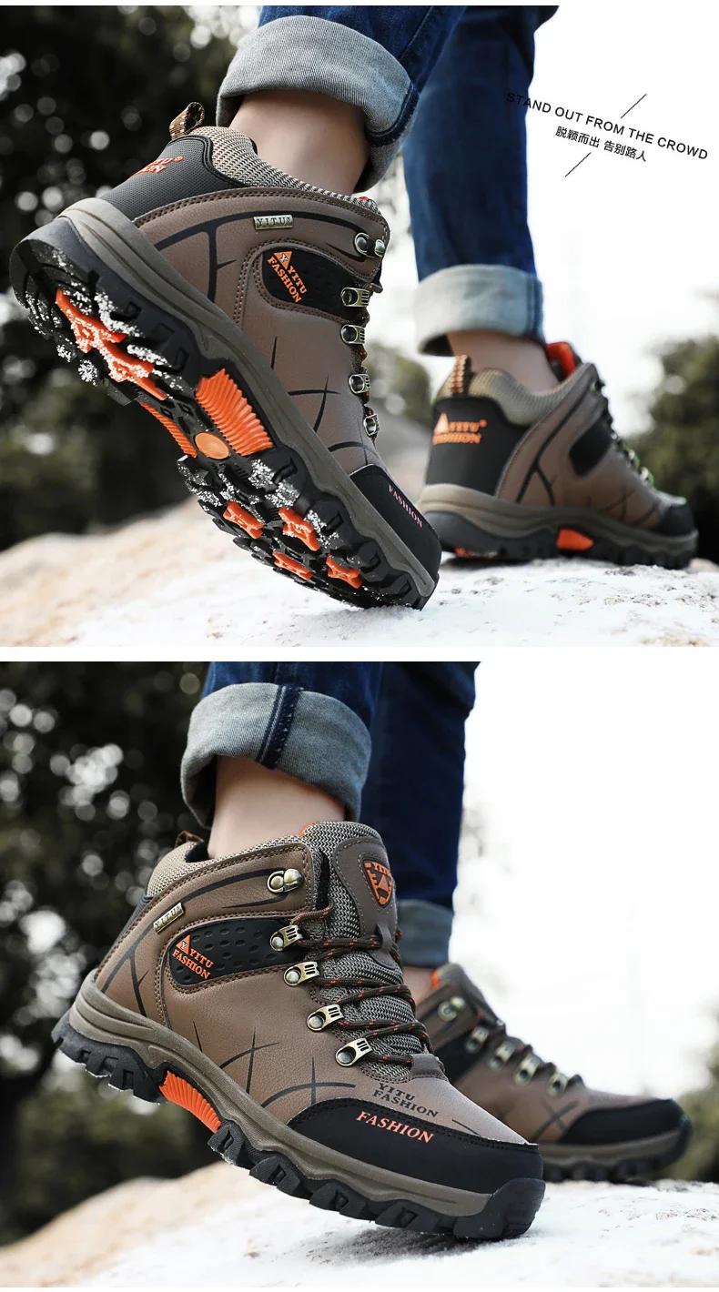 Men's Winter Snow Boots Waterproof Leather Ankle Boots Size 39-47