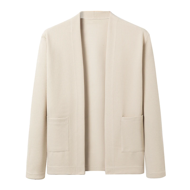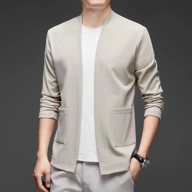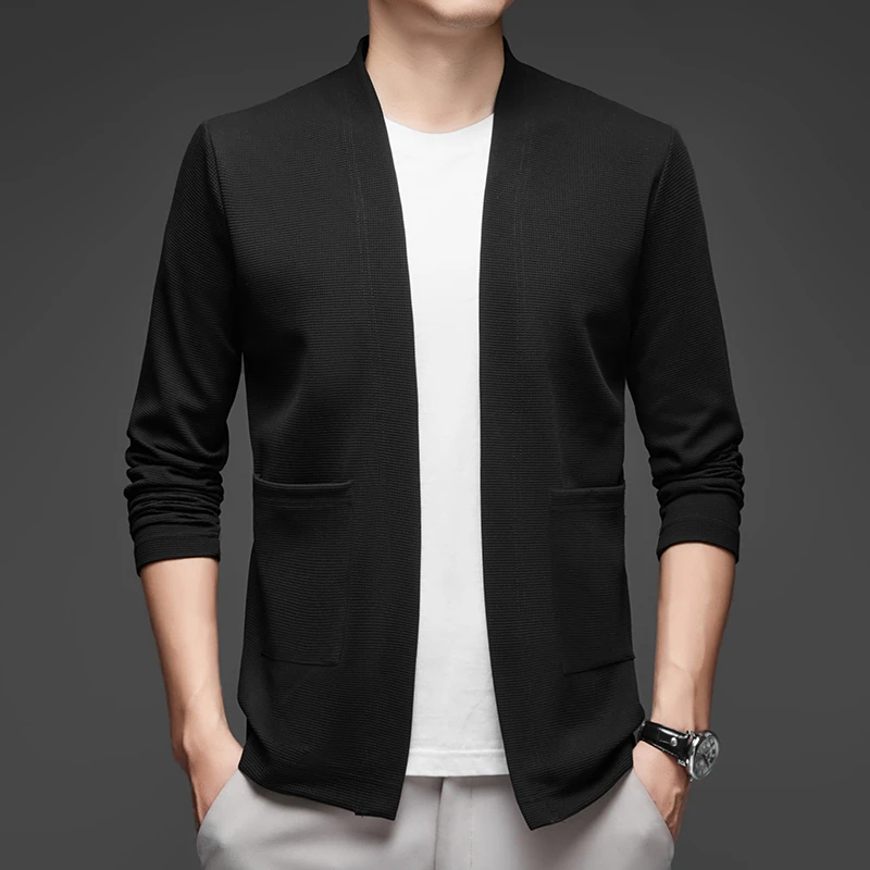 New Men's Business Casual Long Sleeved Solid Color Cloak Jacket Knitted Comfortable and Fashionable All Season Versatile Top