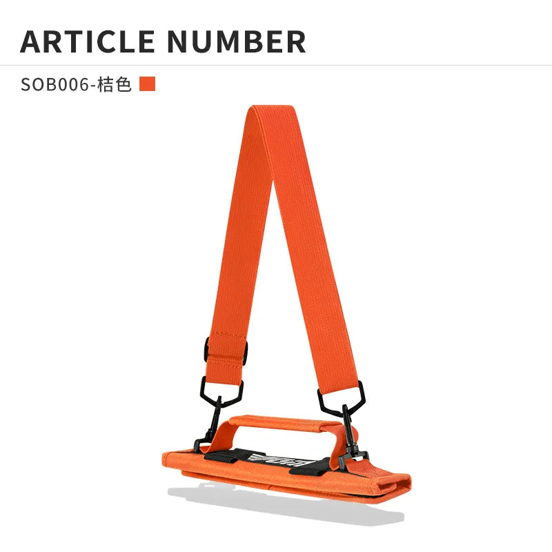 An adjustable shoulder strap enables hands-free transport. The bag features a dedicated ball tee position and can be disassembled for compact storage when not in use.