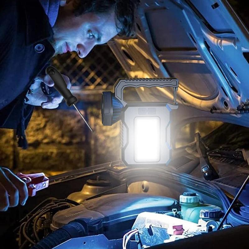 Solar Rechargeable LED Flashlight Searchlight With COB Work Light Lantern