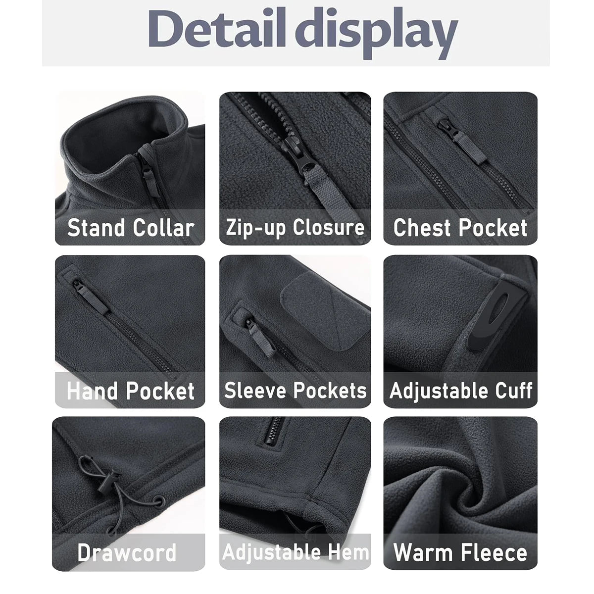 TACVASEN Men's Fleece Jacket Soft Warmth Windproof Full Zip Up Coat Multiple Zipper Pockets Hiking Working Outdoors Windbreaker