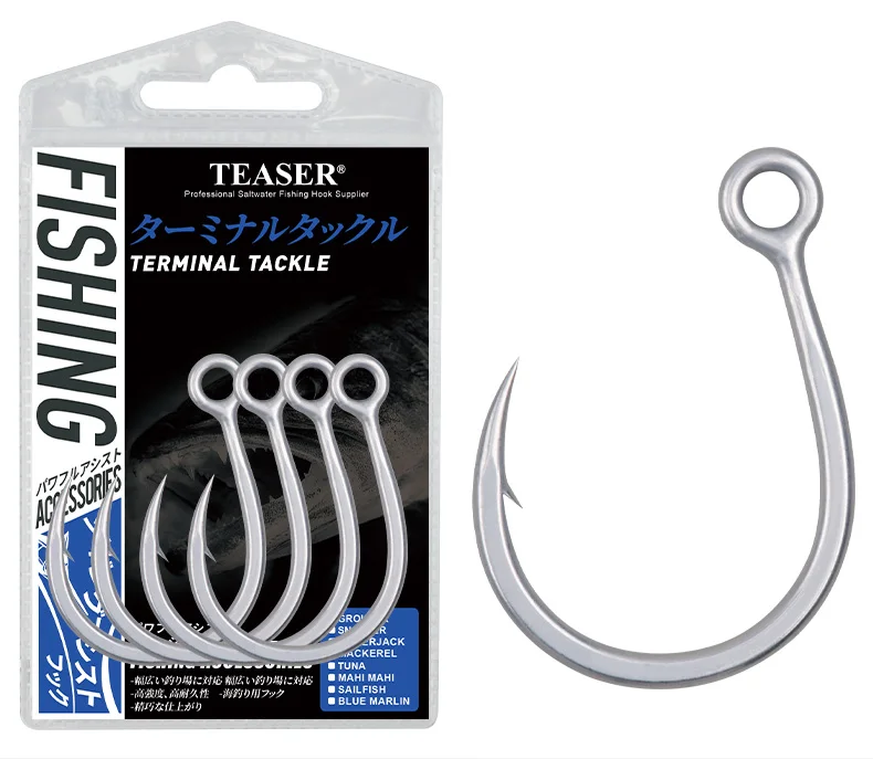 TEASER 8091 5X DIABLO Saltwater Popper Fishing Hook 2/0 3/0 4/0 5/0 7/0 Super Rust-proof Fishing Inline Single Heavy Hook