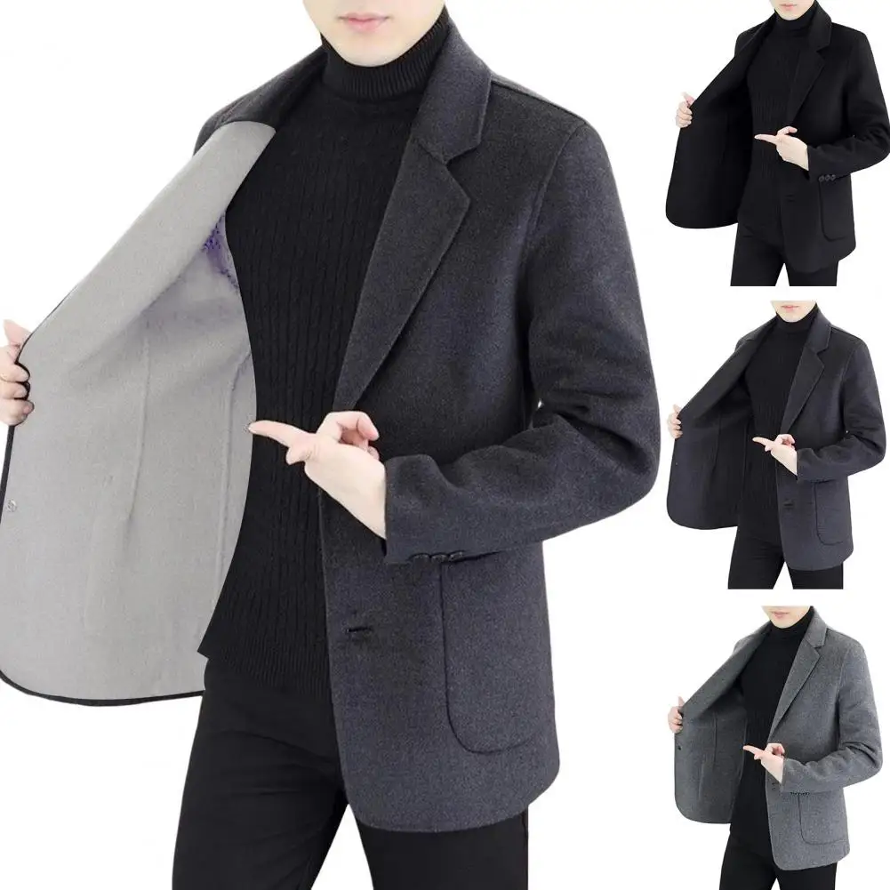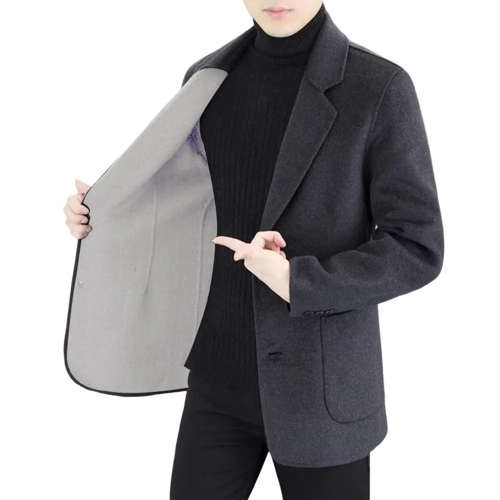 Wool Suit Coat Lapel Long Sleeve Single Breasted Two-Button Jacket with Pockets Solid Color Suit Jacket