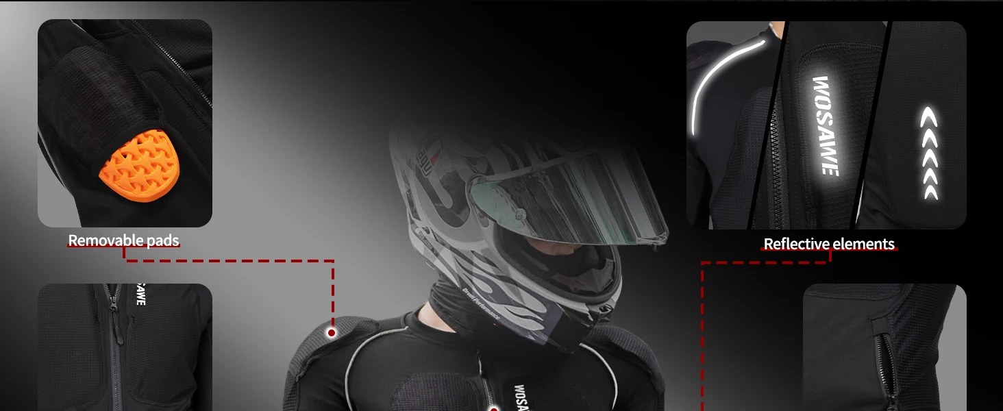 WOSAWE Motorcycle Jacket Full Body Armor Protection Jackets Motocross Racing Clothing Moto Riding Protectors CE Certification