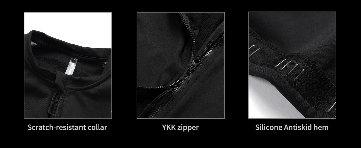 3. 【Slim Fit, Stylish & Functional】 Elastic cuffs, Y-shaped anti-slip hem, and mid-high collar with scratch-resistant edging provide a secure, sleek fit—safe and stylish for every ride.