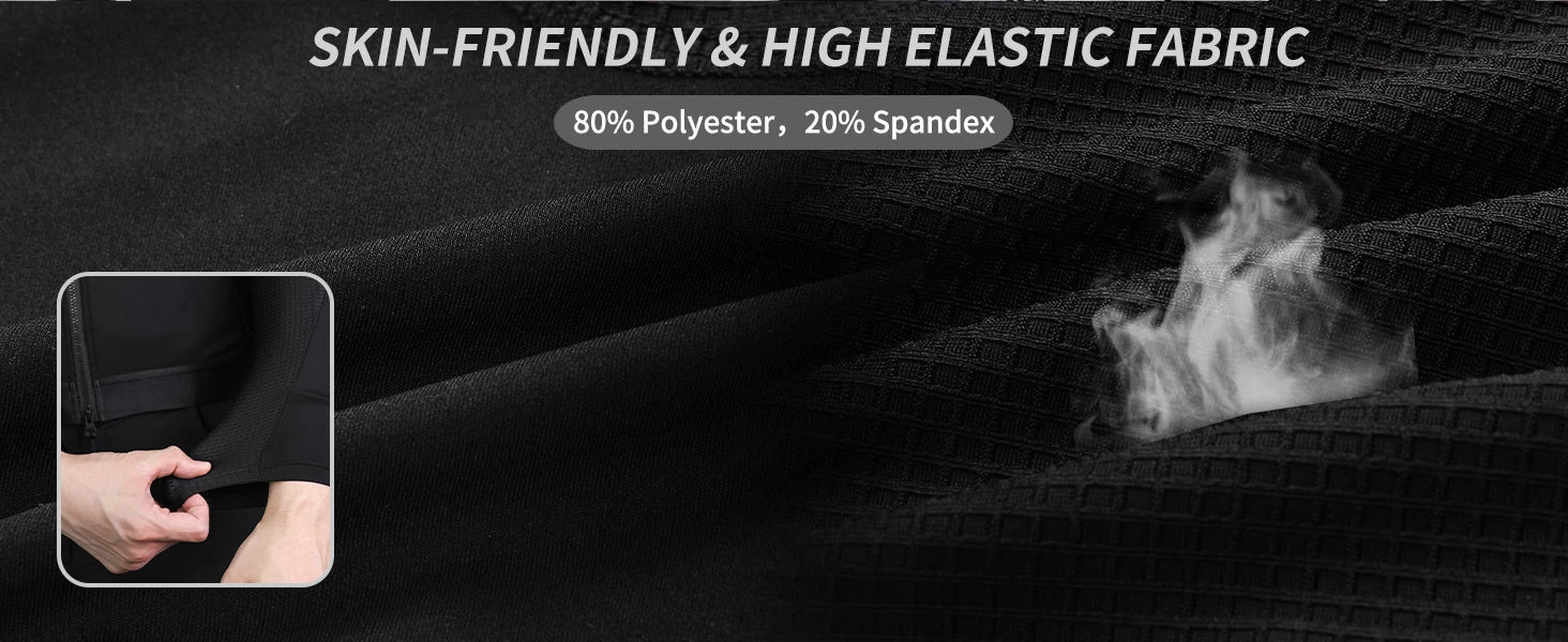 2. 【Breathable & Comfortable, Stay Dry All Day】 Waffle design in protective zones, underarms, and pocket linings ensures quick-drying ventilation, wicking sweat away to keep you cool and fresh.