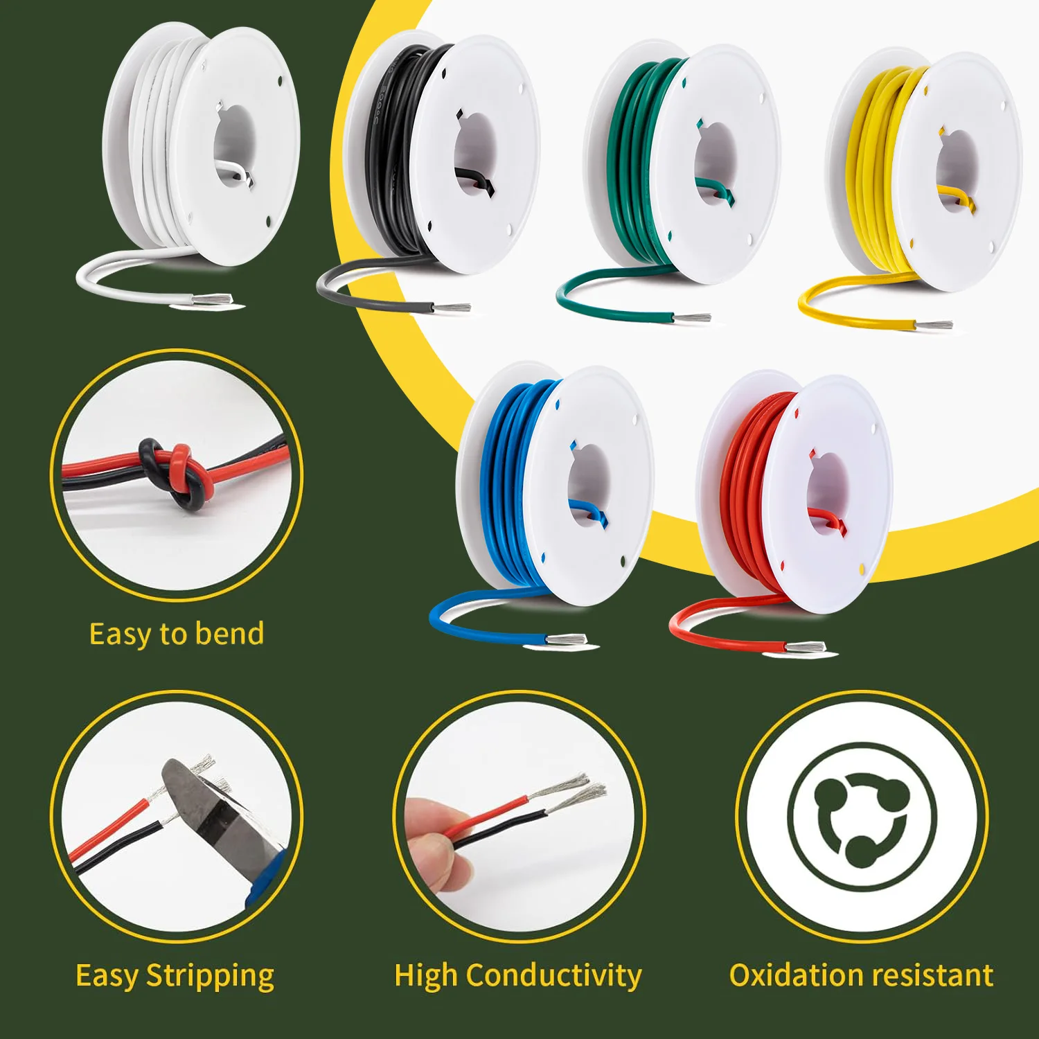 Multi-Color Flexible Silicone Stranded Tinned Copper Electrical Wire Cable Hook Up Wire Kit
