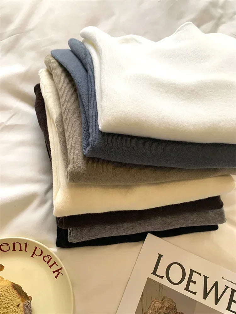 2025 Solid Sweater Women Half Turtleneck Knitted Pullovers Harajuku Korean Soft Warm Knitwear Autumn Winter Fashion Slim Jumpers