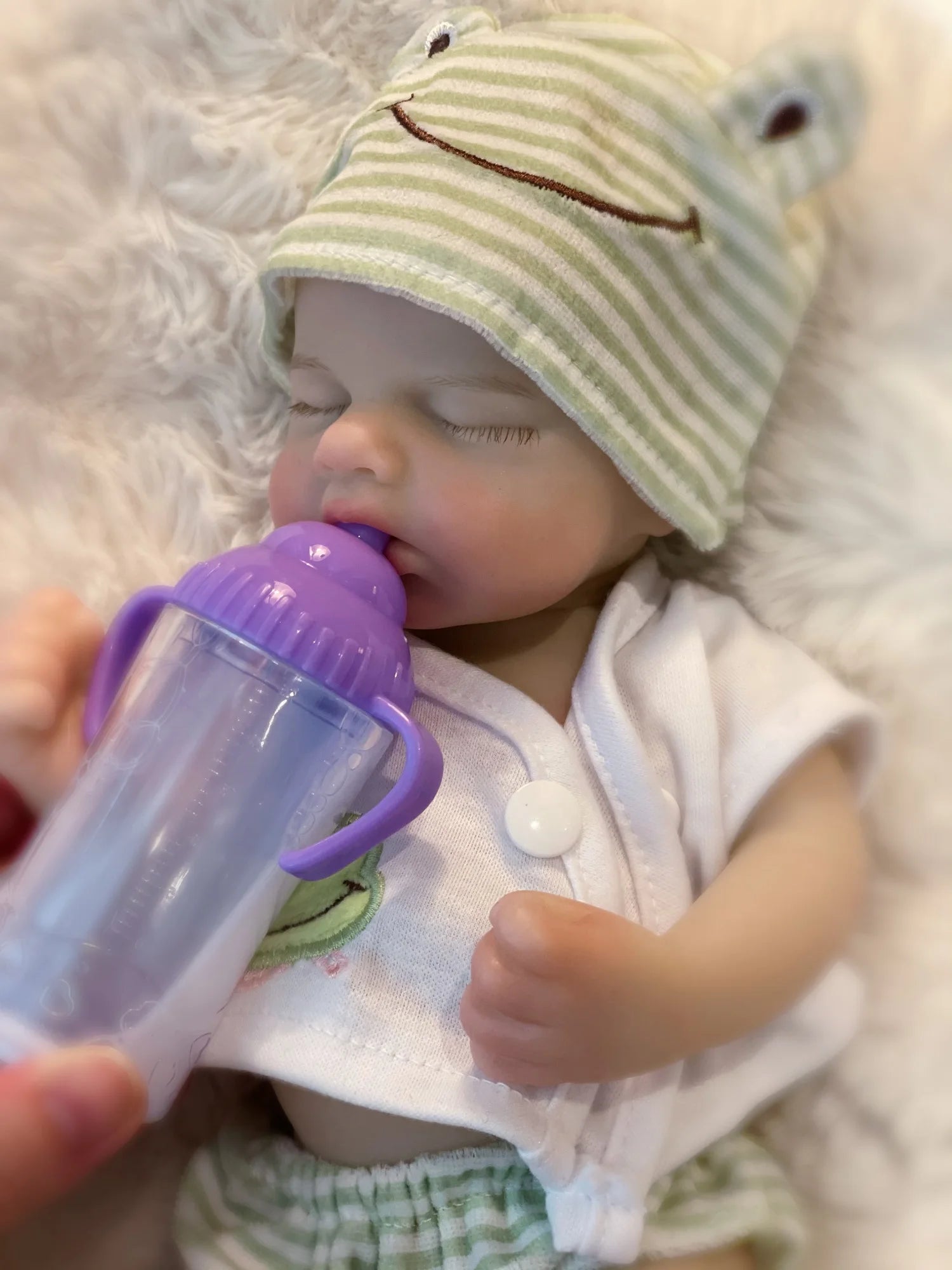 This Item can open a mouth and holding the Feeding bottom or Pacifier.