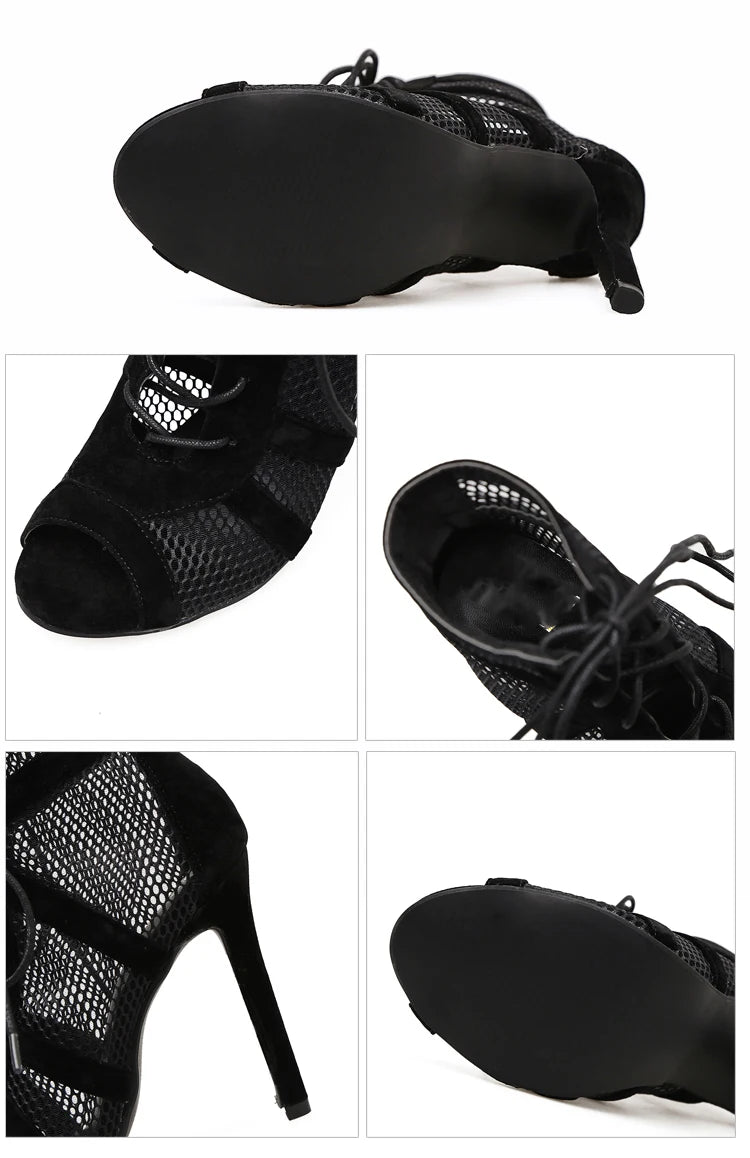 Black Sexy Lace Up Cross-tied Women Shoes Comfort High Quality Thin Heels Open Toe Dancing Sandals Ankle Strap Hollow Out Pumps