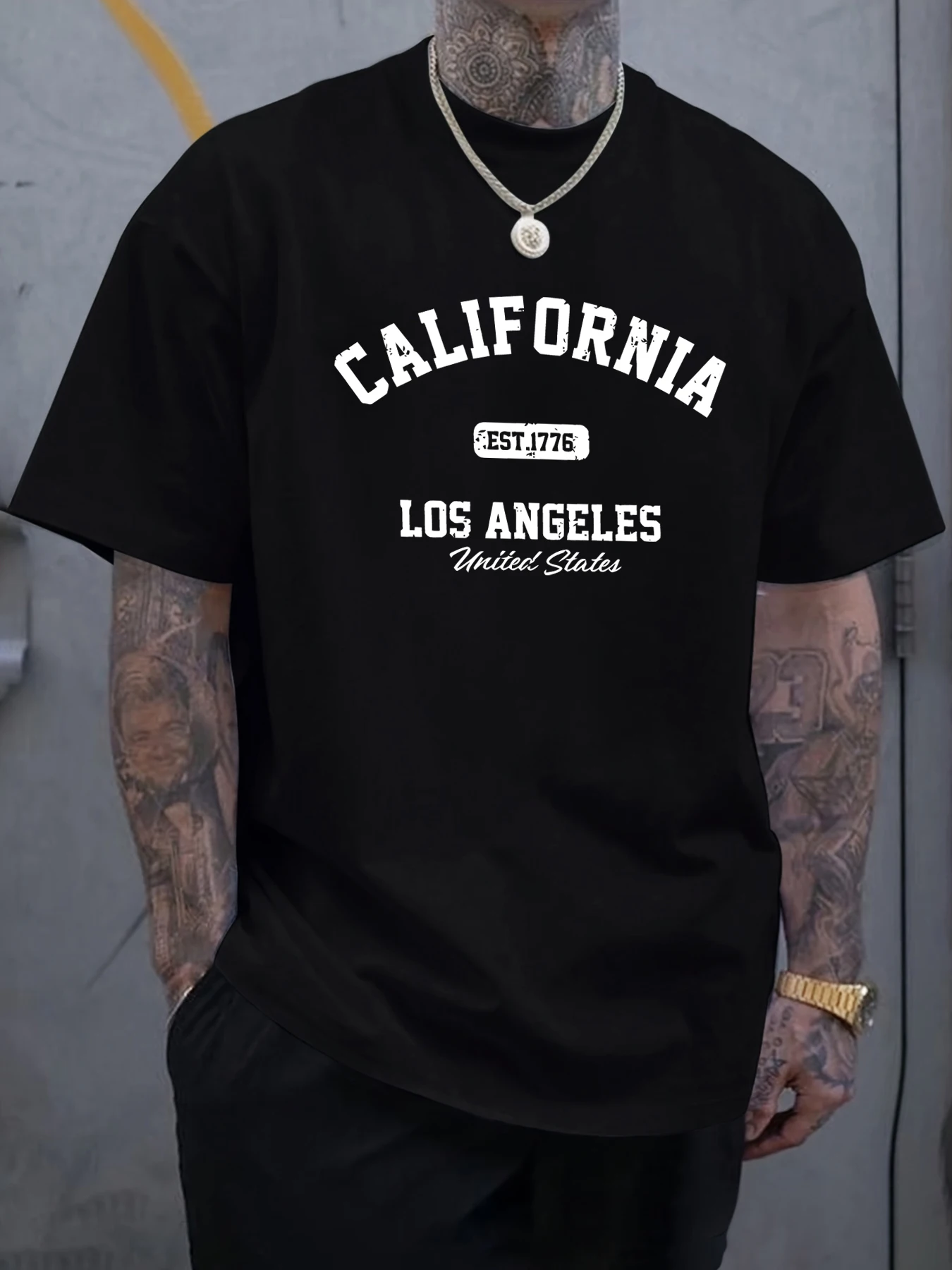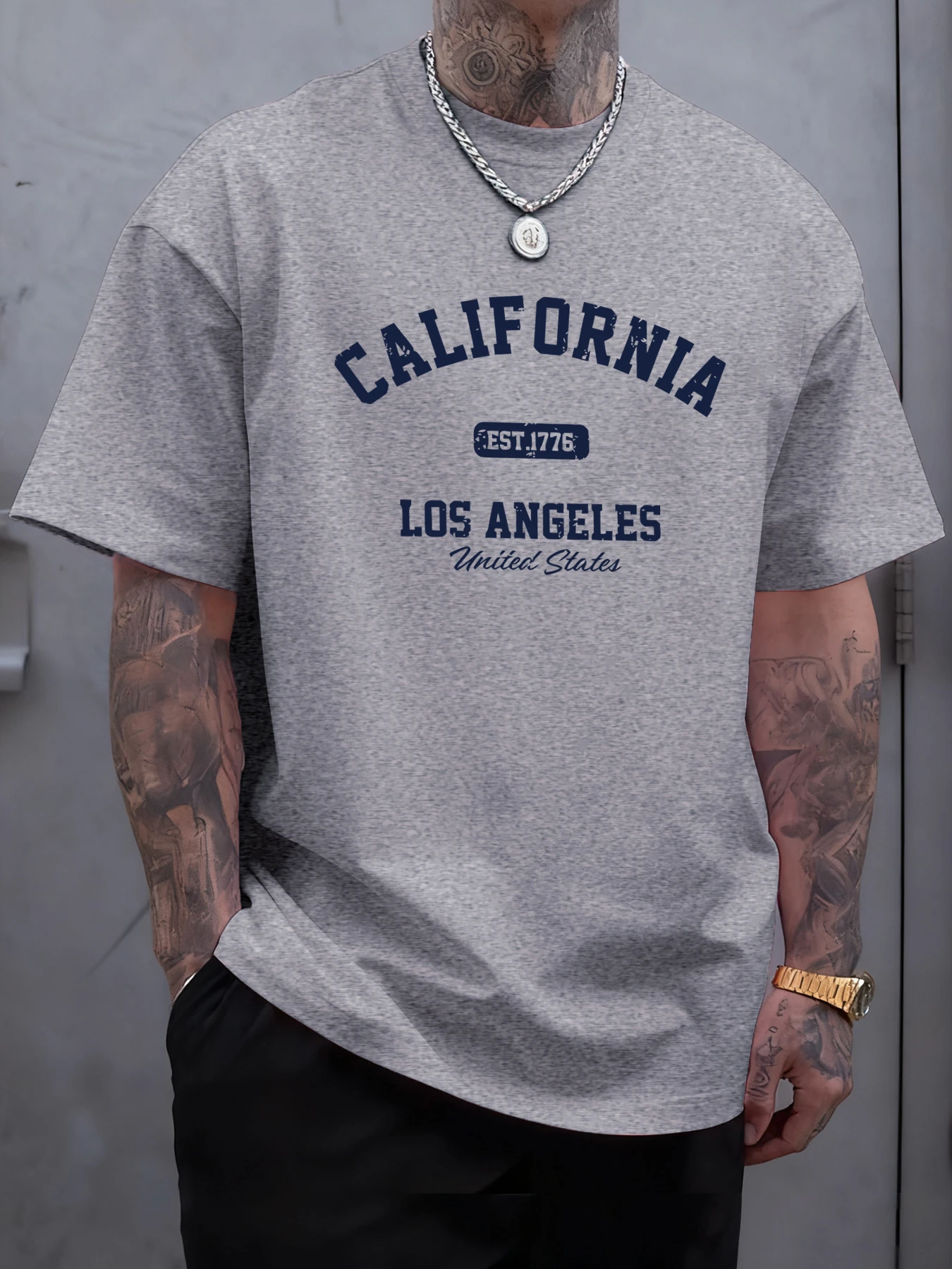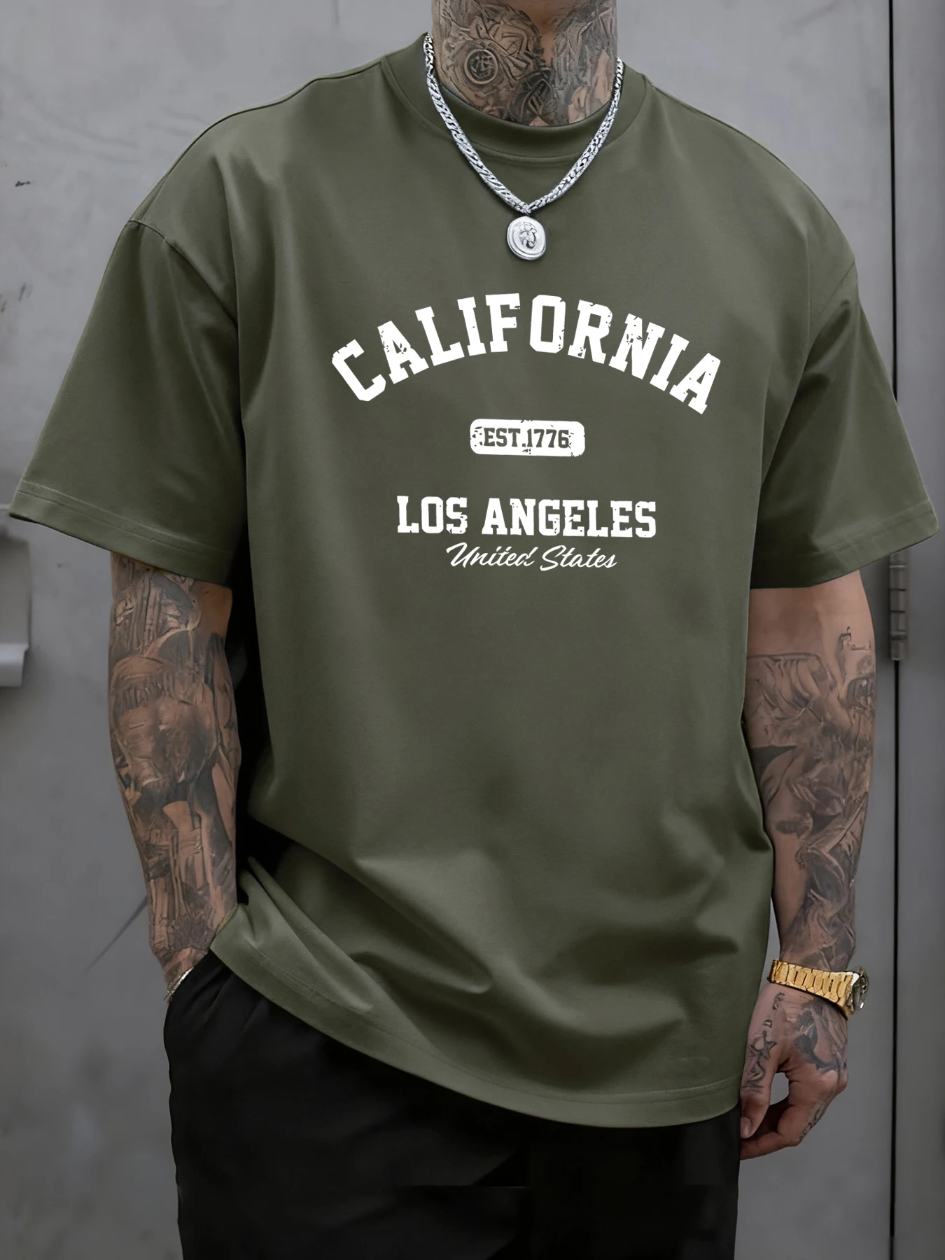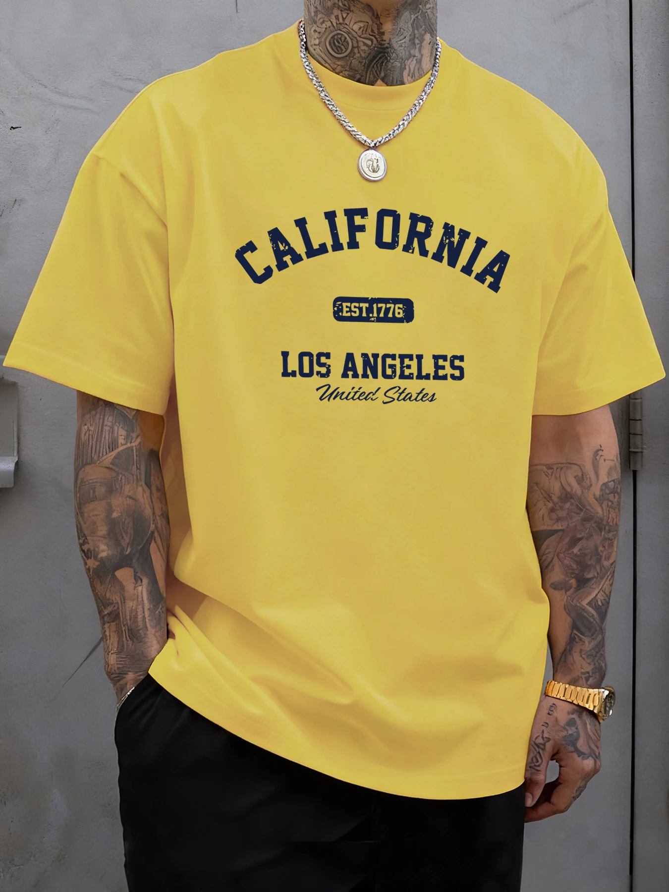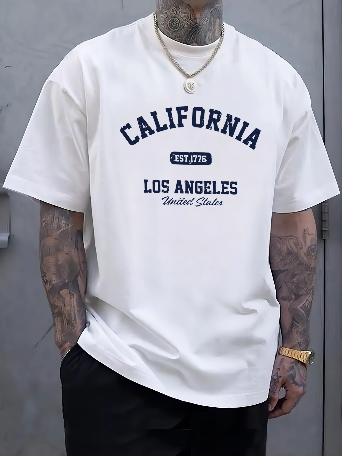 California Los Angeles Printing Male Tee Shirts Hip Hop All-Match Tops Oversized Fashion T-Shirt Cotton Crewneck Short Sleeve