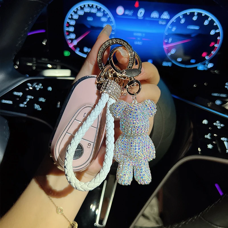 Stylish and cute diamond bear keychain with rope design. Perfect as a car keychain, bag pendant, or gift for friends and loved ones. Durable, lightweight, and fashionable accessory for everyday use.
