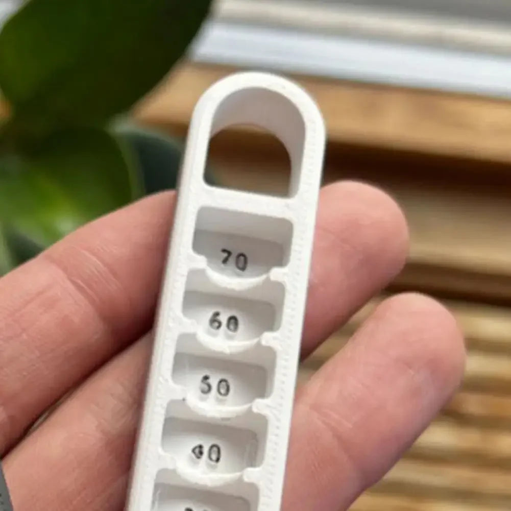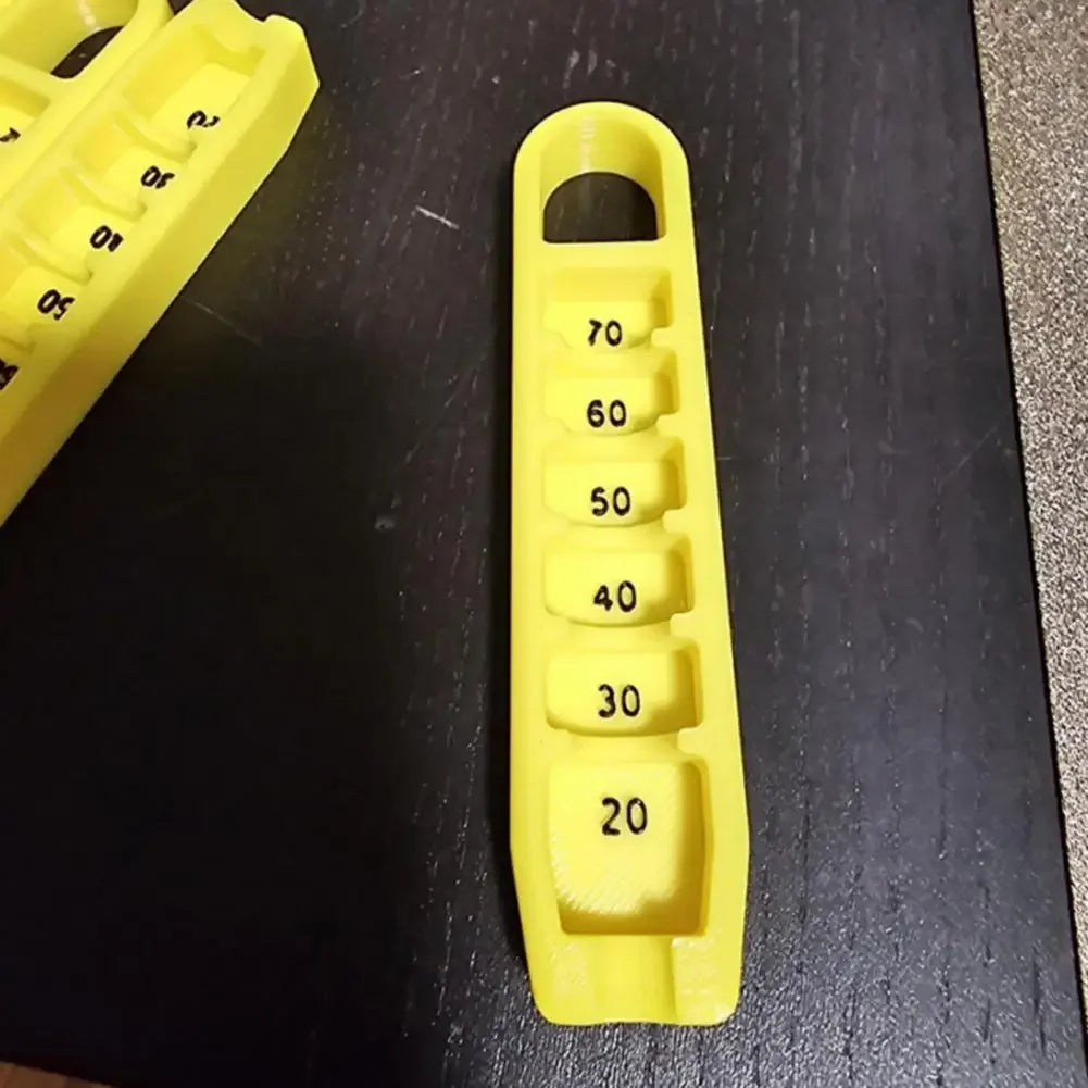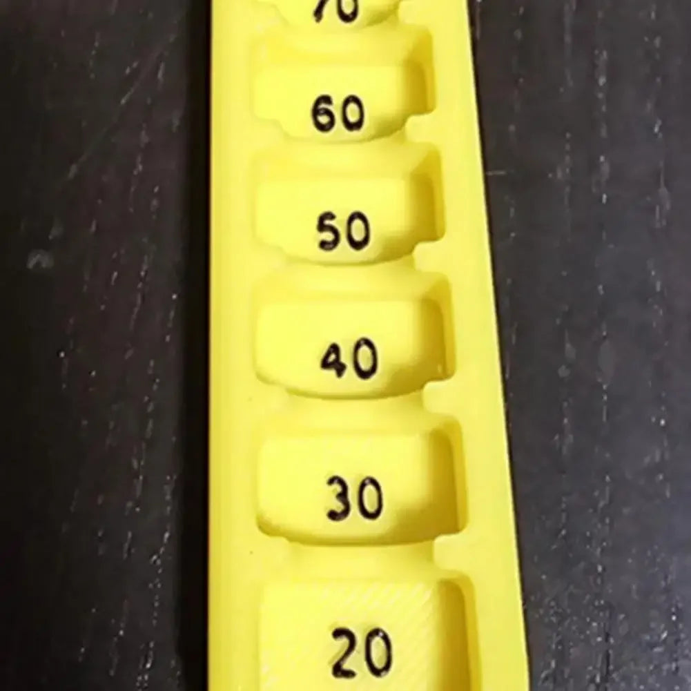 Improve your golf game with the golf tee elevator. This easy-to-use tool features a clear scale for multiple tee heights, allowing you to set your tee height precisely at 20, 30, 40, 50, 60, or 70 mm. Made of durable PLA material, this golf tee height gauge is compact, lightweight, and portable for on-the-go adjustments on the course.