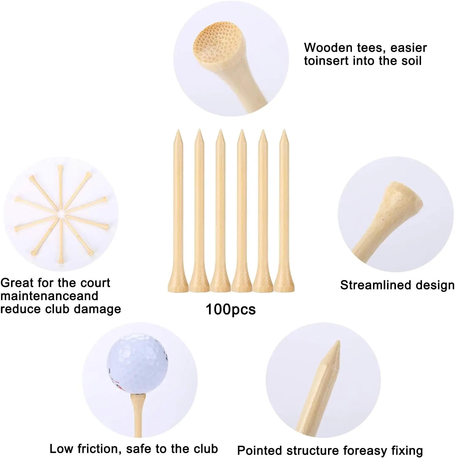 Golf Tees Durable Bamboo Tees 50Pcs/100Pcs 100Pcs 3-1/4" Friendly Biodegradable Material Reduce Friction Side Spin More Stable