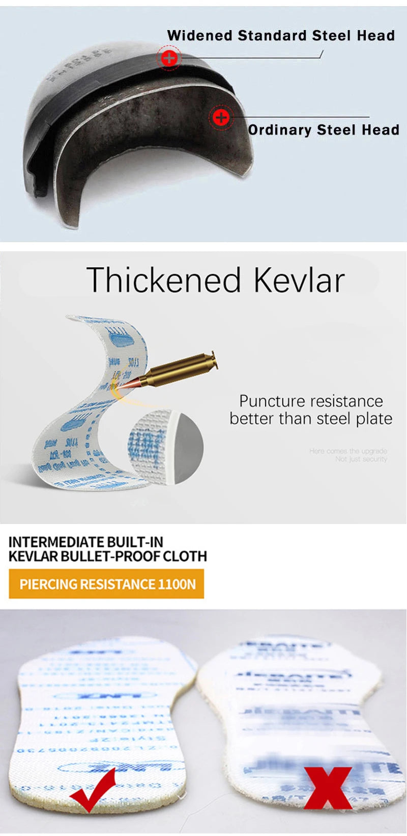 Kevlar Midsole Anti-puncture:This steel toe shoes are made of Kevlar, which is a protective fiber material. It can protect feet from being punctured by sharp objects like nails, steel bar.