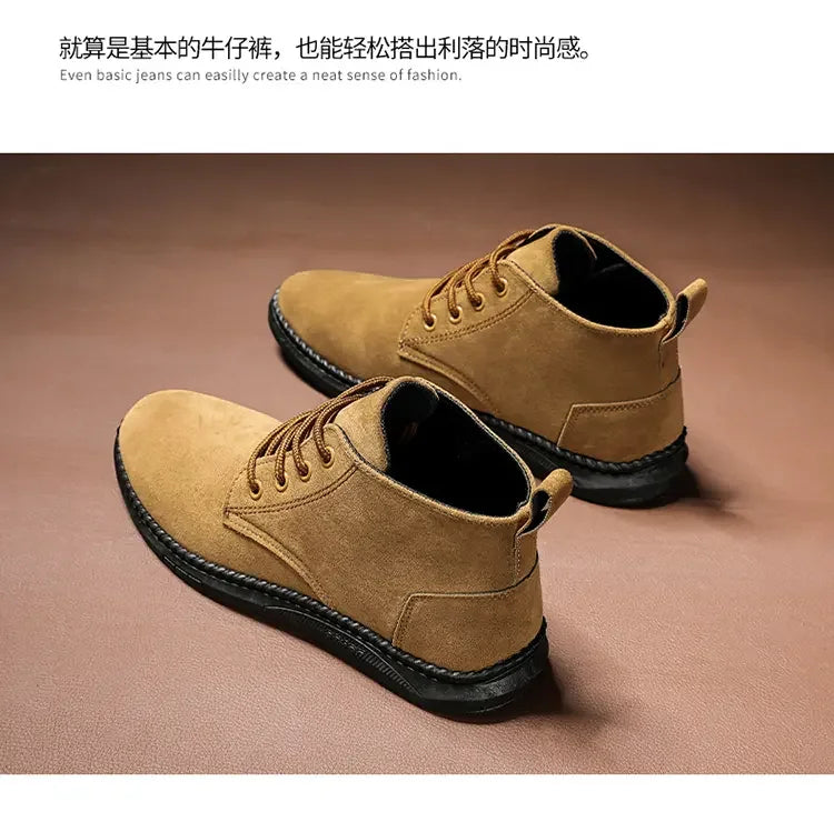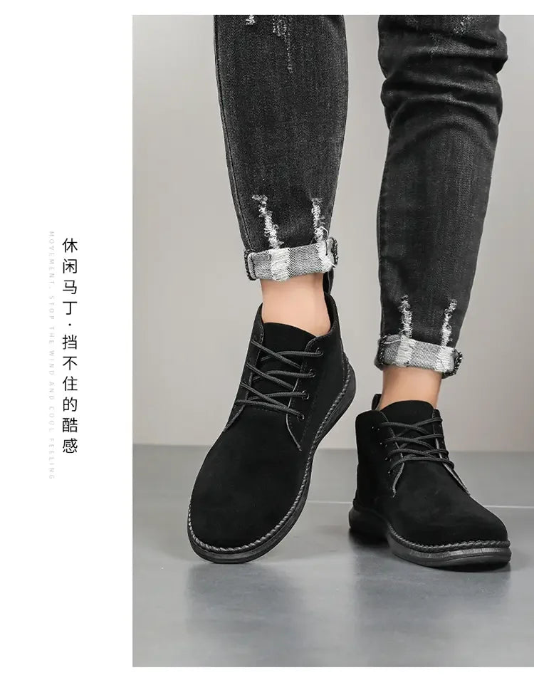 High Top Casual Board Shoes Men's Lace Up Suede Black Flat Bottom Short Boots Men's Chelsea Boots High-quality Brand Denim Boots