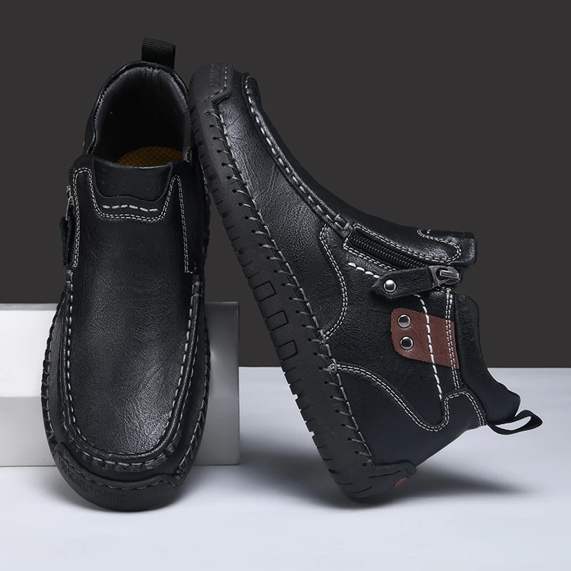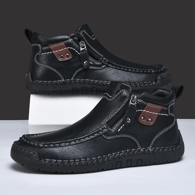 Leather Men Ankle Boots Slip On With Zipper Casual Breathable