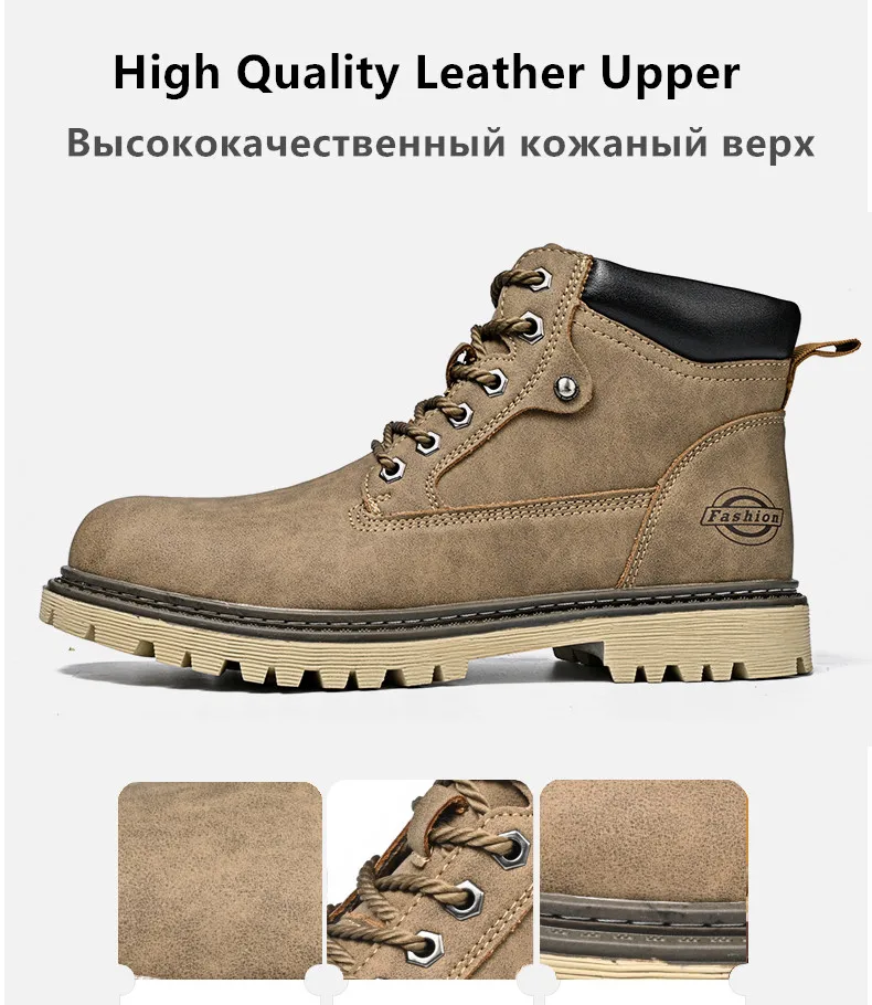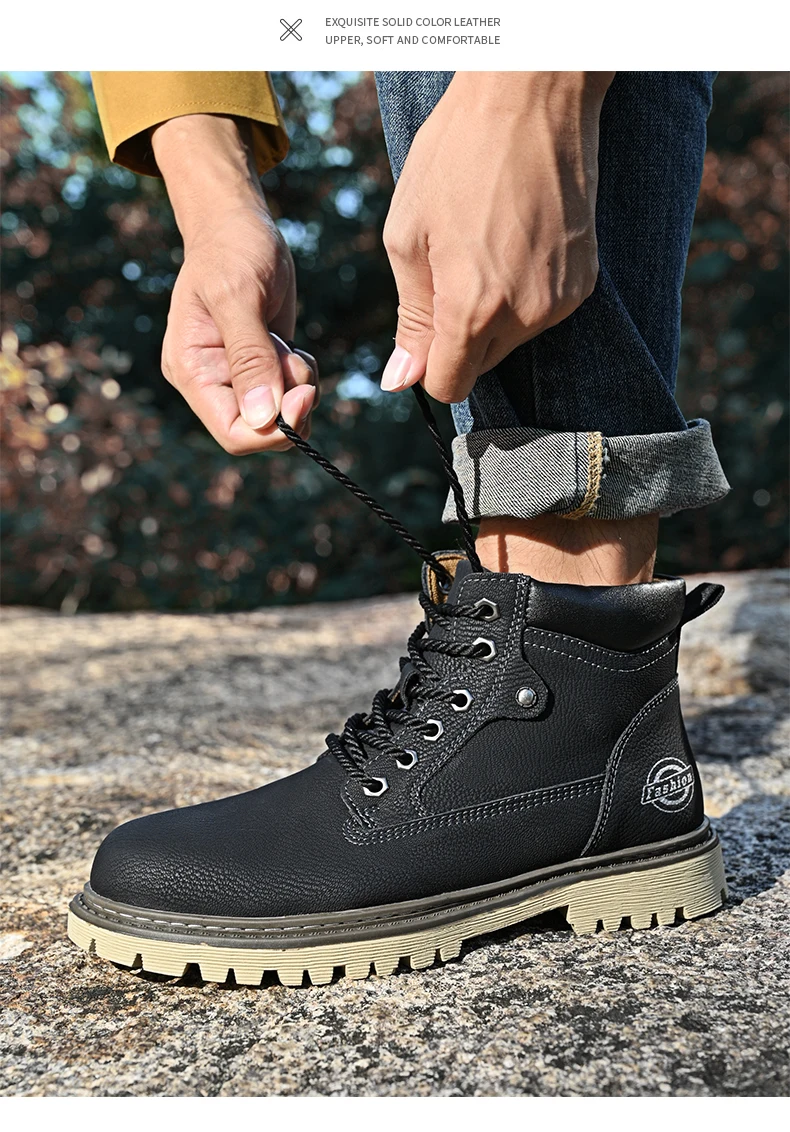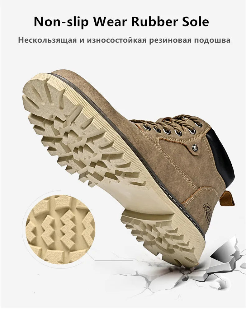 Leather Men Work Boots Mid Calf Ankle High Top Non Slip