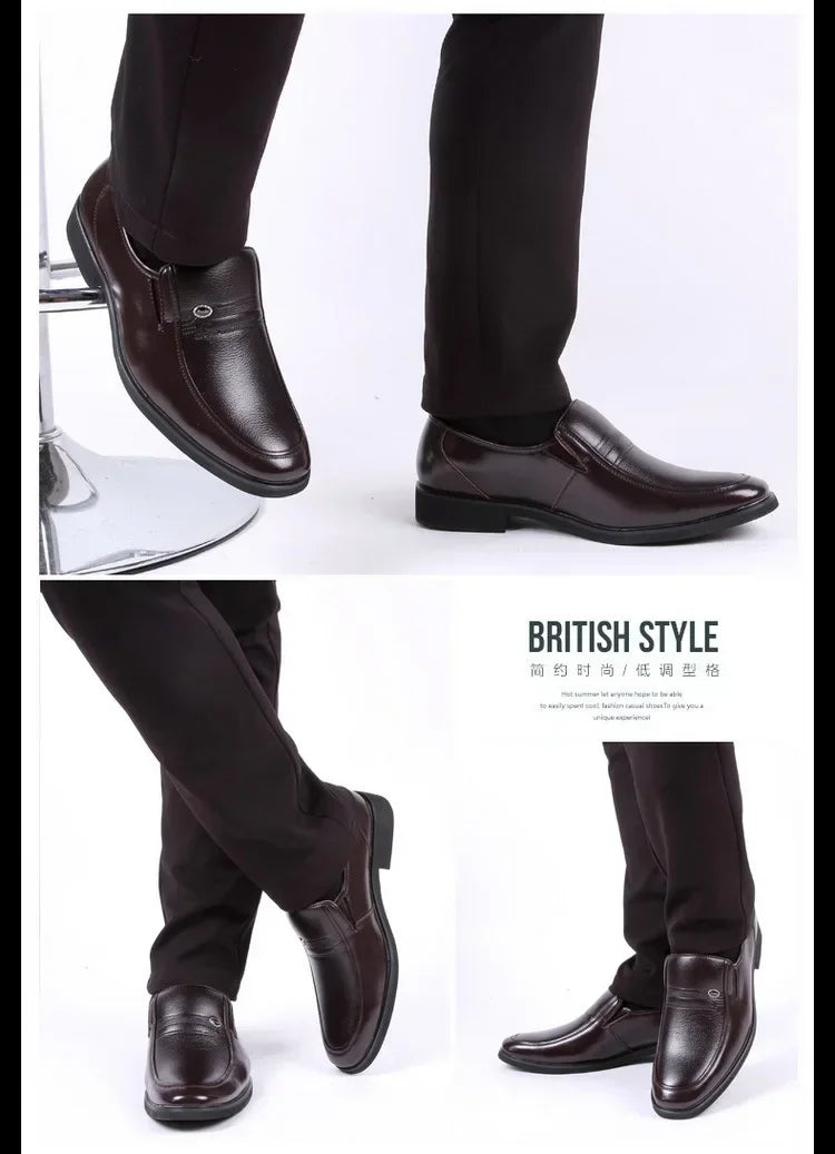 Leather Men's Slip-On Breathable Formal Shoes, Black, Sizes 38-44, Loafers
