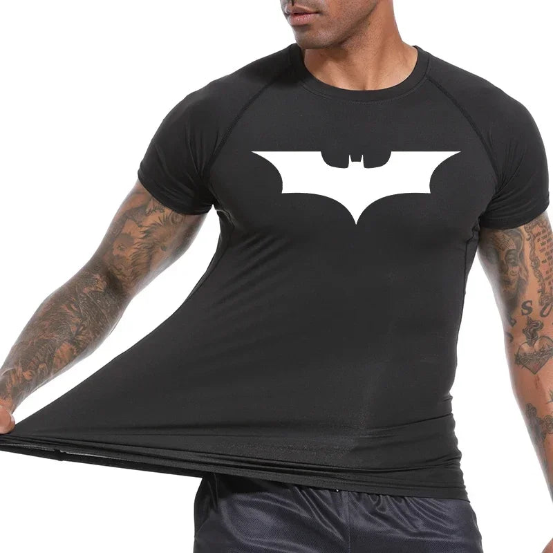 Men's Bat Print Compression Shirt Summer Short Sleeve Quick Dry Rash Guard Gym Workout Running T-Shirt Athletic Tees Tops