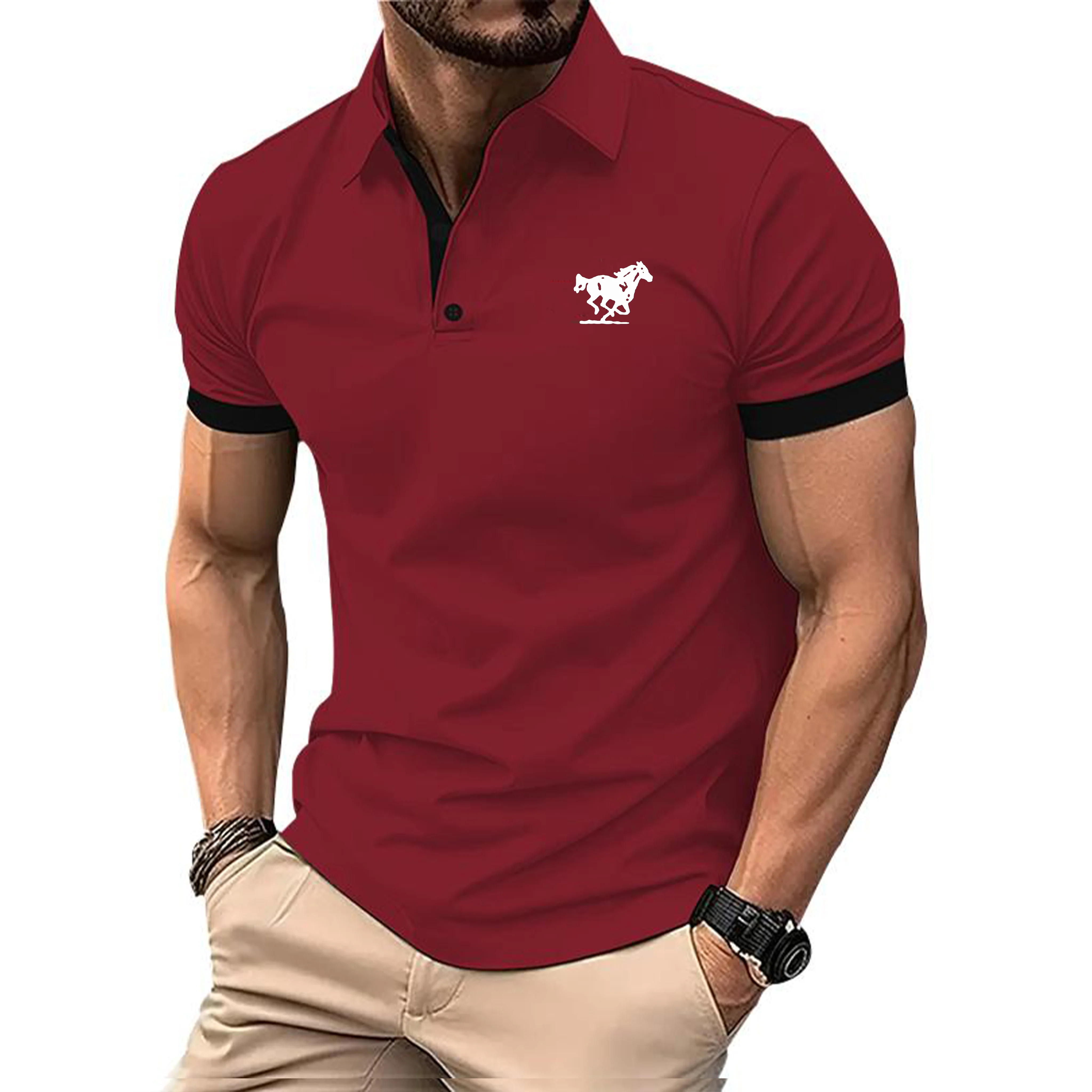Men's Summer Short Sleeved Minimalist Polo Shirt Fashionable Loose Casual Versatile Short Sleeved 100% Polyester Fiber