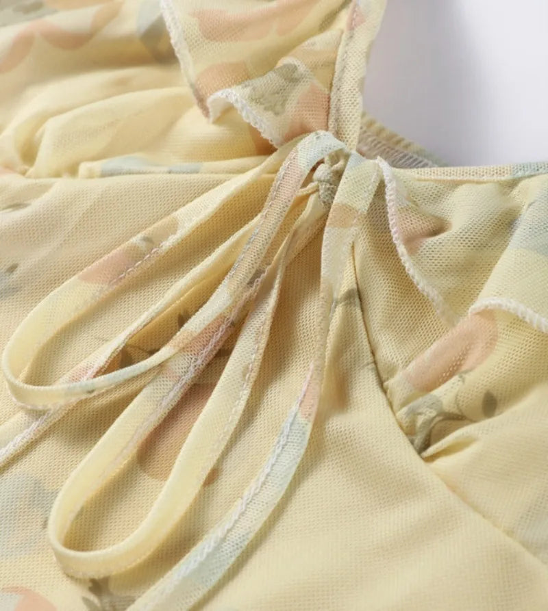 Summer Flower Printed Women's Sexy Low-cut Dress Sleeveless Backless Slim Sling Dresses 2025 Beach Vacation Lady Vestidos