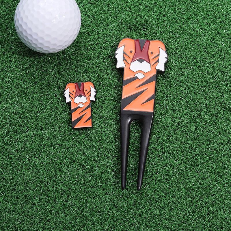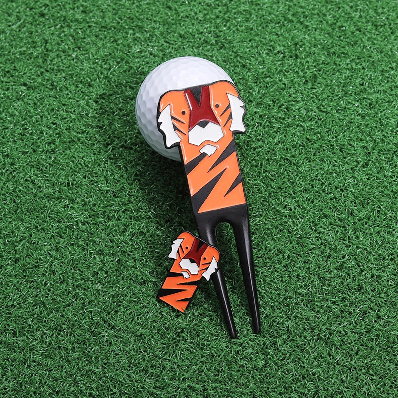 Tiger Divot Repair Tool Cartoon Small Tiger Ball Golf Fork Metal Golf Divot Accessories with Golf Ball Marker Golf Accessory