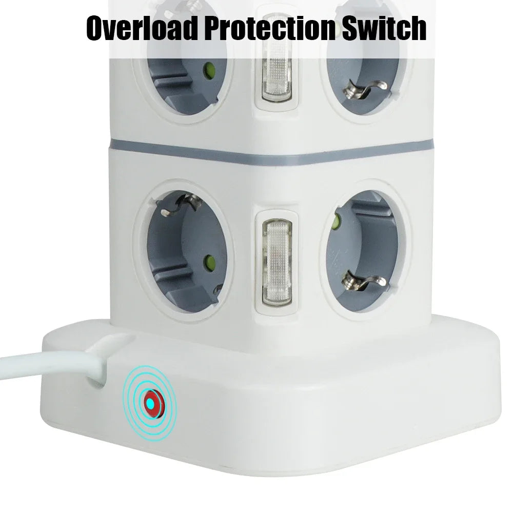 1Pcs Tower 12 Way Outlets Socke