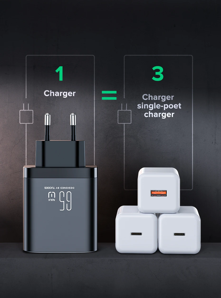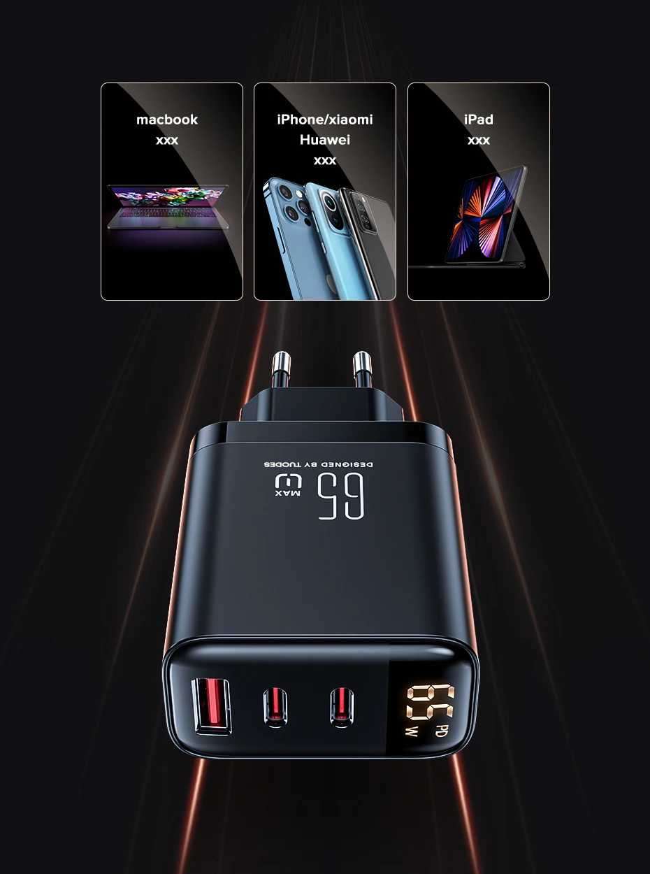 Tuodes 65w GaN Charger PPS PD USB Type C Fast Charging QC4.0 Quick Charge For iPhone 17 Macbook Air Tablet Samsung Xiaomi Laptop