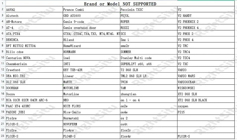 The following brands of RF remote controls or technologies are not supported by our products