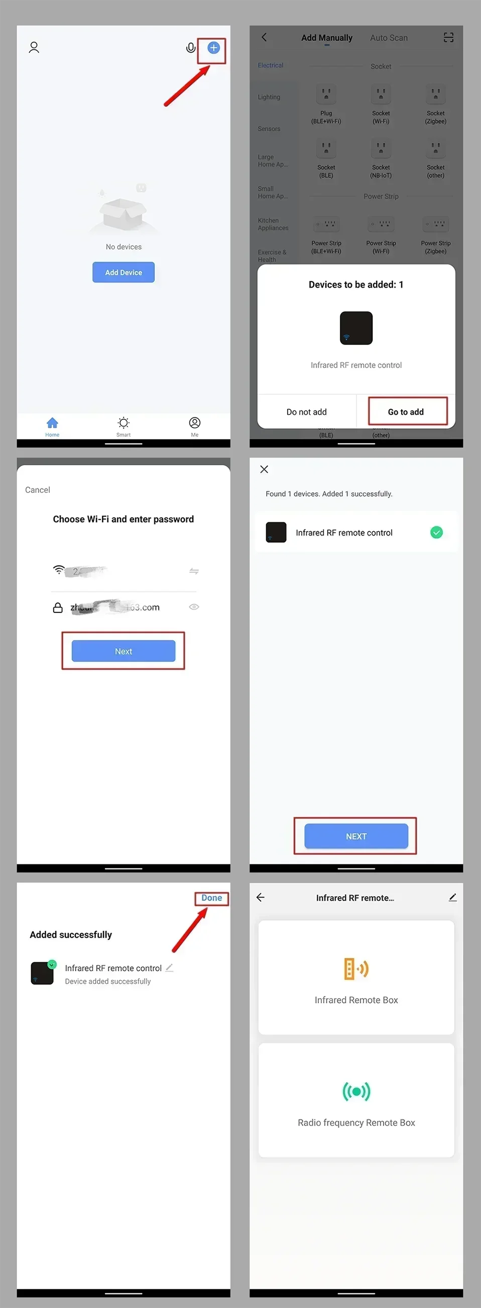 5. Make sure the Wi-Fi password entered is correct when adding remote control.