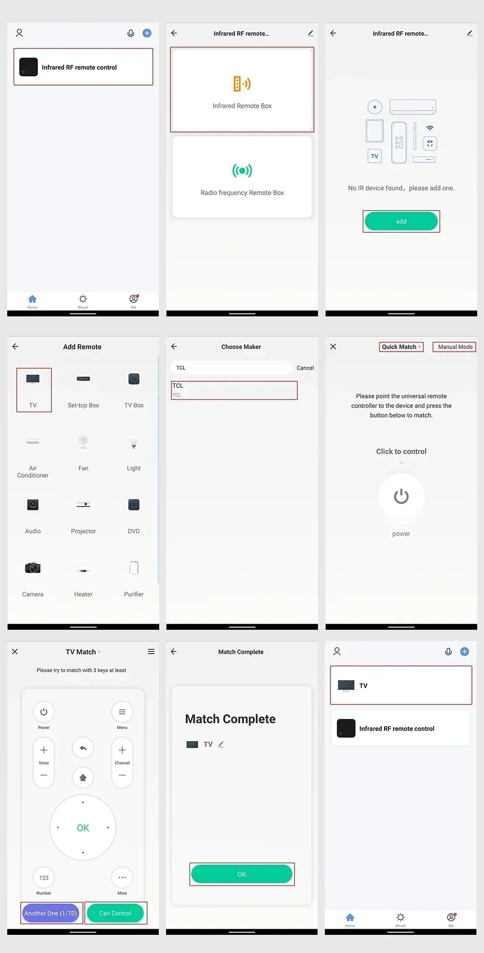 NOTE: The Smart IR Remote can control multiple infrared remote control home appliances, the APP does not limit the specific number, but they must be in the same room.