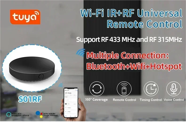 Tuya WiFi IR RF Remote Control 315 433 MHz Universal For All Air Conditioner TV LG Smart Life App Work with Alexa